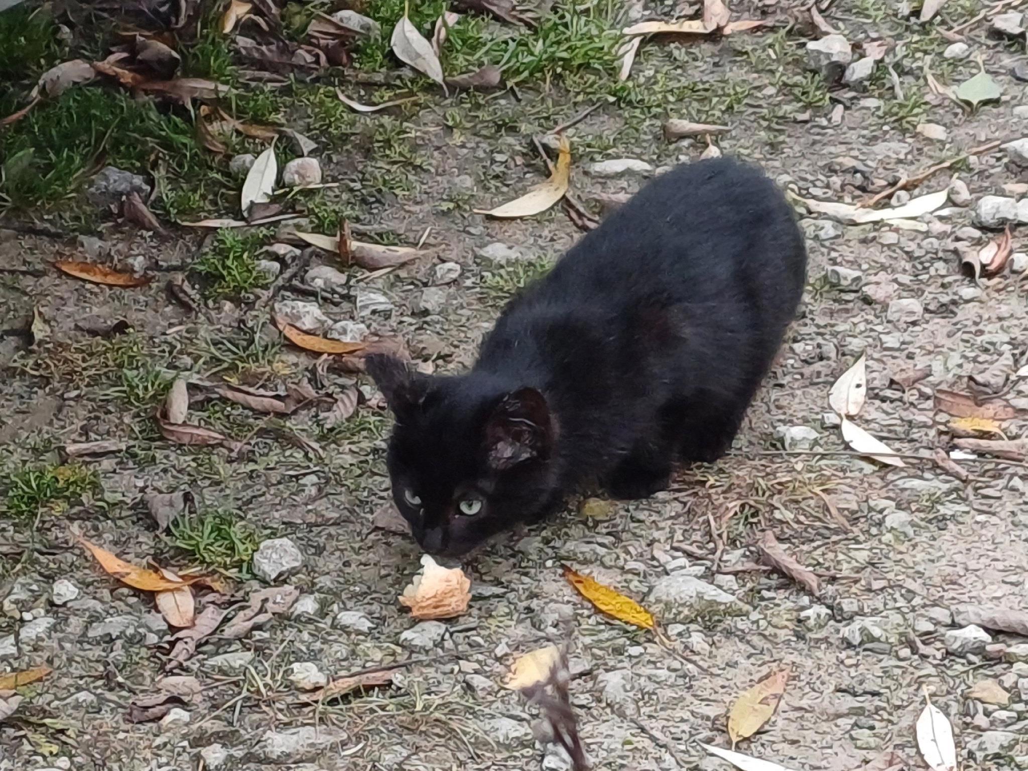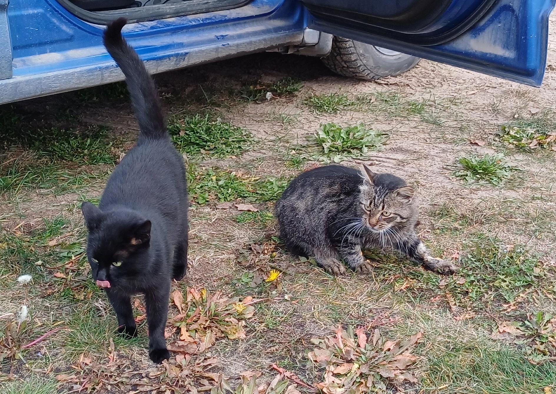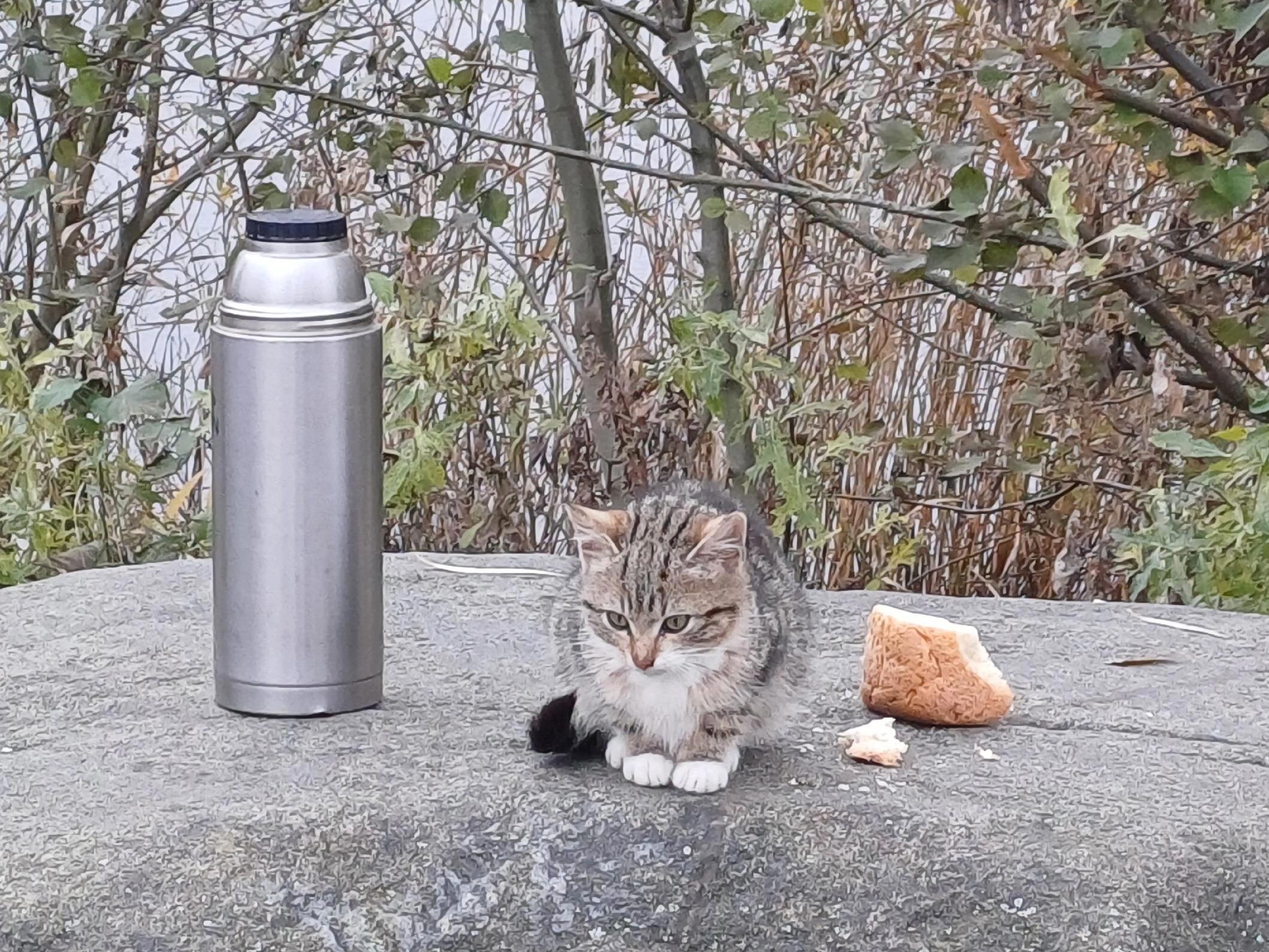 Когда вернулись к своей машине и сели перекусить - услышали требовательное мяуканье. Открыли дверь - еще один, на этот раз взрослый. Пришлось делиться:
