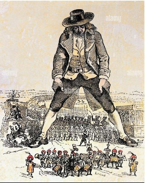 Помните сцену, которую рисуют, наверное, все иллюстраторы Свифта - армия лилипутов, марширующая между ног Гулливера?