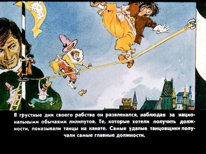 Выпавшая из времени фантастическая история о приключениях обычного человека в стране маленьких людей и государстве великанов вновь и вновь заставляет детей мечтать о дальних странах и синих морях.