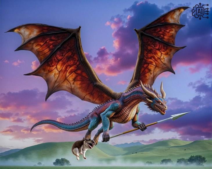 "Пешком идти по этой странной степи Максу совсем не хотелось. Немного подумав, он всё же решил лететь. Вот только вышла небольшая заминка, копьё никак не хотело исчезать вместе со всем остальным. Видимо, слишком оно длинное, «не габаритный груз», рюкзак и одежда довольно компактны, а длинное древко не складывается. Придётся держать в лапе, бросать полезный подарок охотника не хотелось, ведь охотится на крупную дичь с ним намного удобнее, хоть и не великий копейщик.