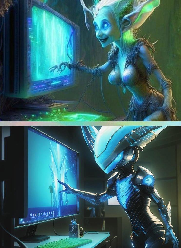 Так что. Могу показать электро-эльфа. Он у меня вовремя Э-резвого мероприятия был. И суть в том что он читатель и коректор. И точно... Повесть завершилась, завершается тем. Что электро-эльфа только коллективный.