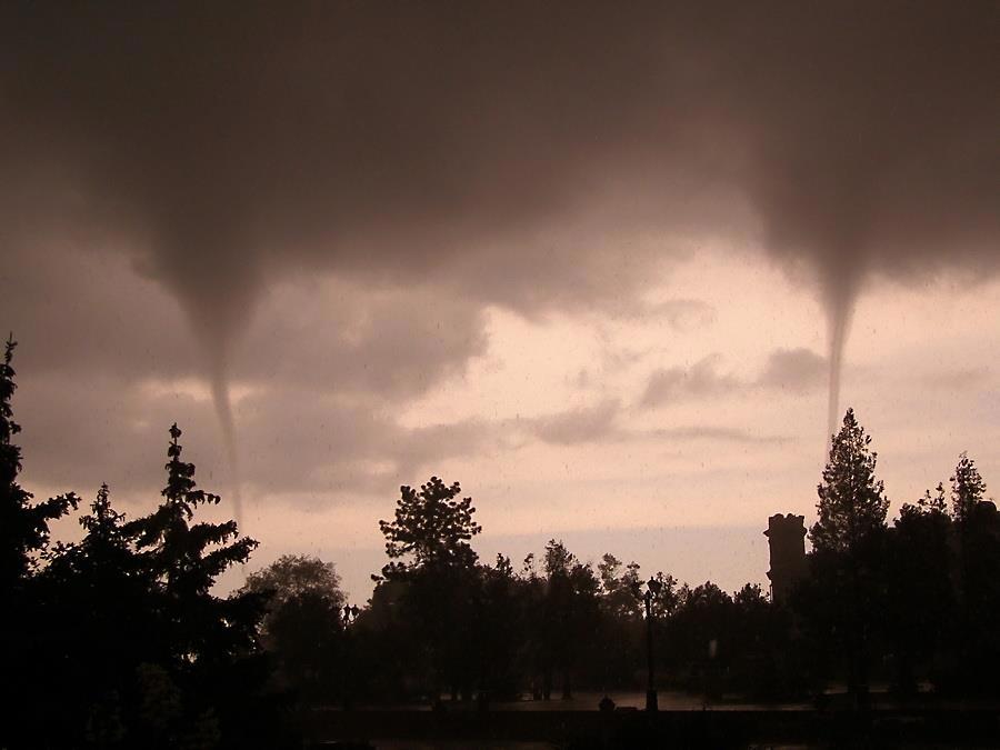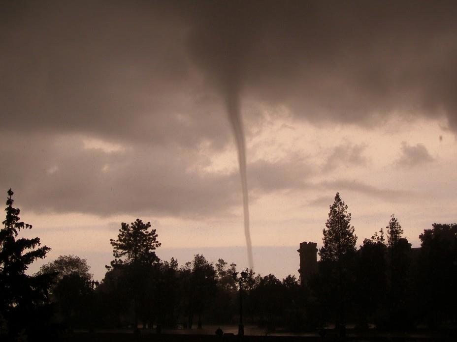 Еще в этой главе есть смерч идущий из моря в степи. Я такие видела несколько раз, но снять удалось смерчи "городские", которые появились в проливе после сильного ливня, прямо напротив центральной площади города. Сейчас, когда у каждого под рукой смартфон с камерой, снимками и видео смерчей не удивить, а тогда это была невероятная удача.