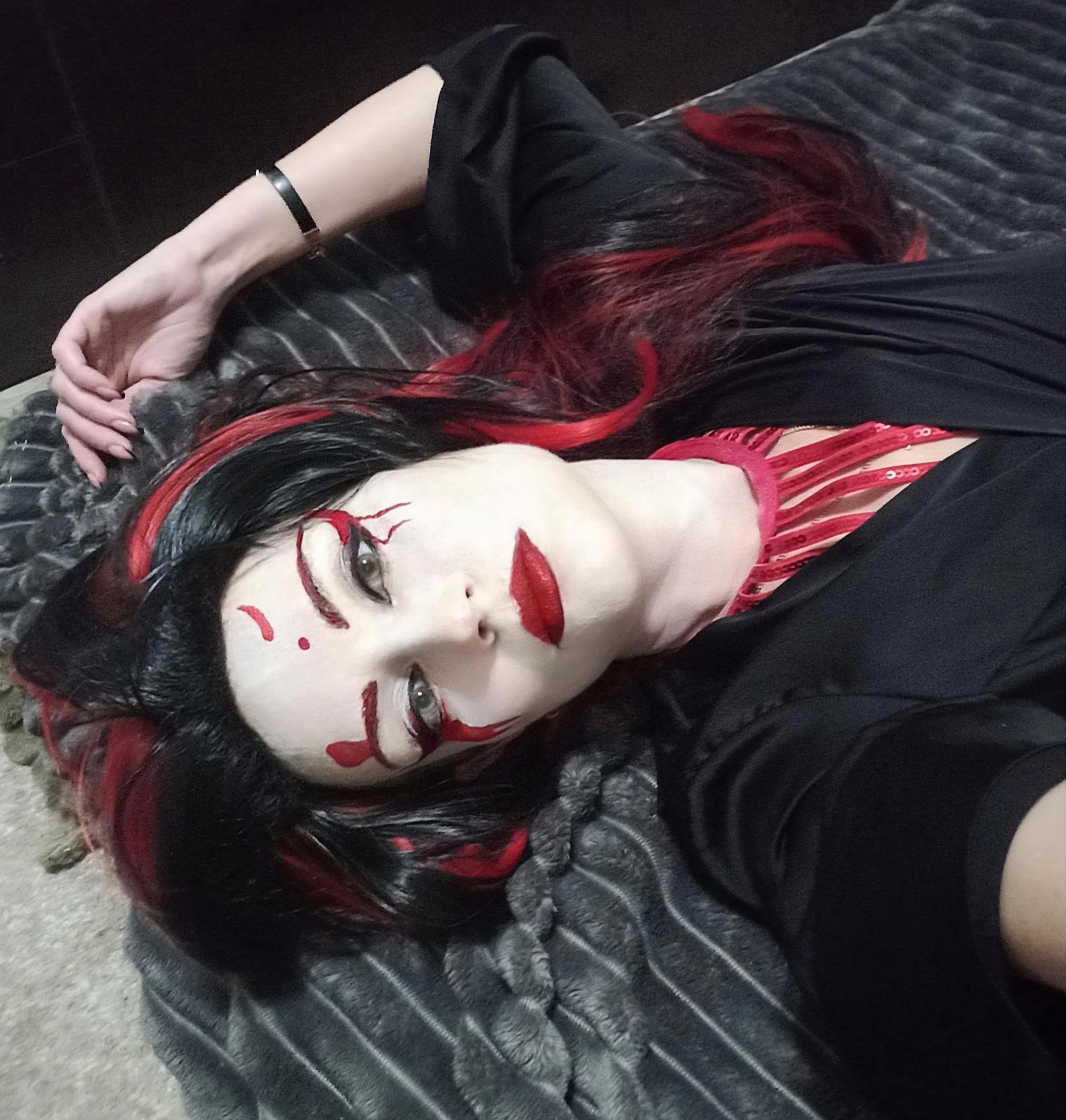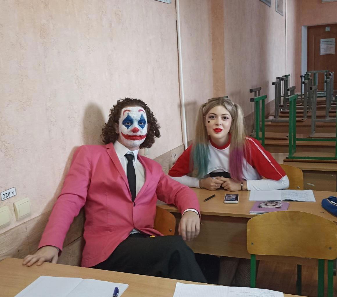 Парньій образ: Джокер (актуальный вальтсмен, помните летний пост? это нифига не парик, чел сам по себе такой кудрявый) с Харли Квин + сестра Джокера Лиза.