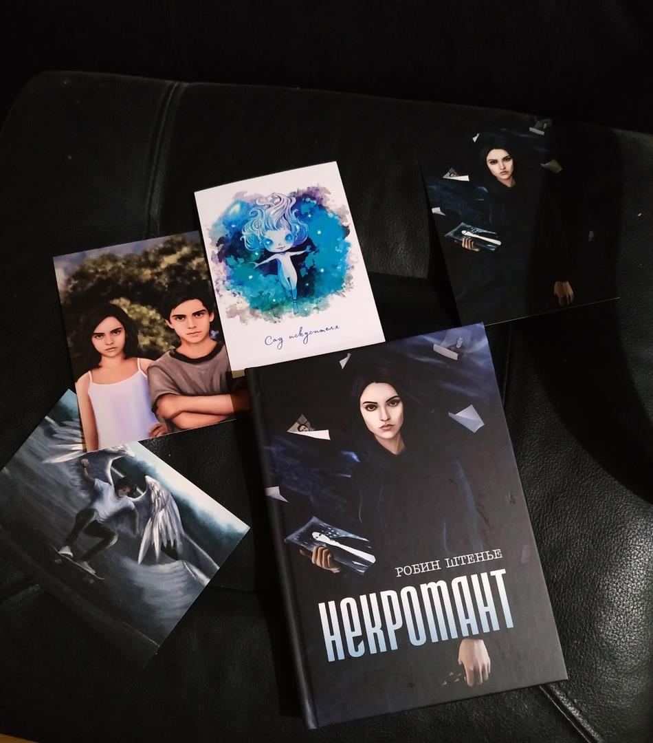 В комплекте к книжке ещё и открыточки идут. И одна бонусом не по этой книжке, а по новинке у Робина. Я пока ни ту, ни другую не читал. Вот как раз в бумаге почитаю. И вы можете почитать Некроманта тут. Или даже приобрести у Робина бумажный экземпляр. Вроде 800 рублей вместе с пересылкой, если я не ошибаюсь. Но лучше уточните у него, если вам надо.
