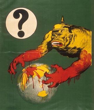 1914 год. Начало первой Мировой Войны. В этом же году заработала пропагандистская машина, выводя происходящее на новый уровень. Германская Империя в войне пропаганды была повержена - они пришли драться по правилам, в боксерских перчатках, но сразу получили выстрел в колено. Немцы пришли на семейную разборку европейских народов, а их обозвали нелюдью и гуннами, изображая вот так:
