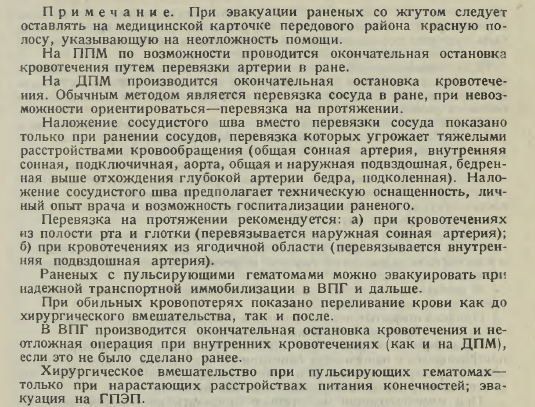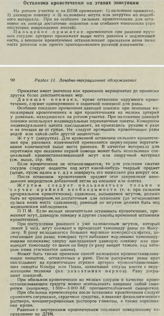 К слову, вот что указывается в нашем военно-санитарном справочнике по теме остановки кровотечения: