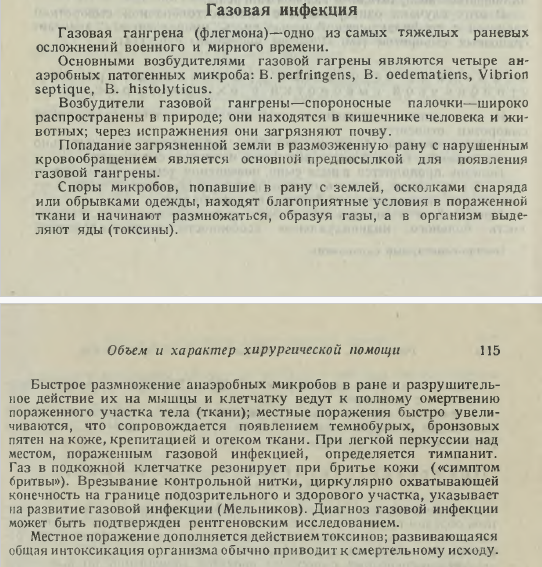 На этом моменте я очень сильно удивился. Зачем бы им издавать общие указания для профилактики гангрены? Неужели этому не только необучены сами врачи, но и им банально неоткуда это узнать, например из руководящих документов? К примеру, вот так раздел о борьбе с гангреной выглядит в отечественном справочнике: