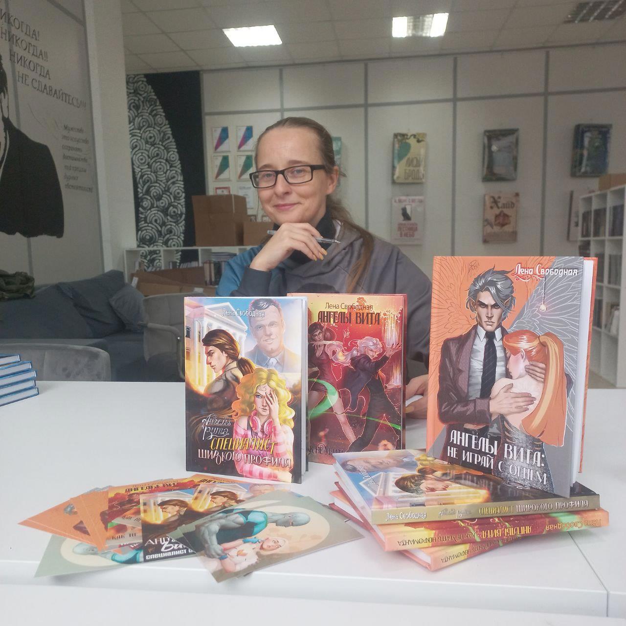 Будут, наверное, в боте издательства Руграм в телеграм. Во все вложила дополнительный сюрприз в виде открыточки, но троим достанется особенная - с артом обложки "Ангелы Вита: я тебя вылечу" с цитатой из нее