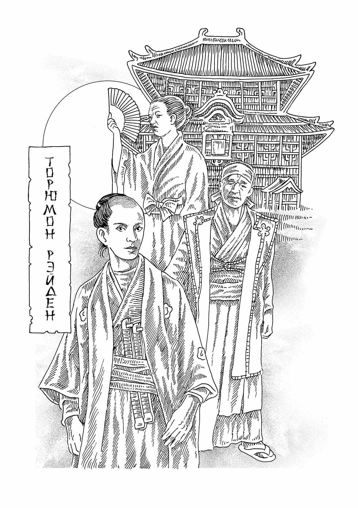 «Приняв оружие от меня, Ясухиро некоторое время размышлял о чем-то своём. Нагината подрагивала в его пальцах. Сенсей перекладывал её из руки в руку, иногда перебрасывал, давая «длинному мечу» на миг повиснуть в воздухе, поворачивал, наклонял. Движения были простенькими, задумчивыми, не имевшими боевого смысла, но я не мог избавиться от впечатления, что сенсей ведёт трудный поединок. Мне даже показалось, что в глубине шлема, принадлежавшего давно умершему воину, прямо за железной маской демона, зажглись багровые огни. Они светились в прорезях глазниц, словно предок Ясухиро тоже следил за действиями потомка – и понимал в них куда больше моего.»