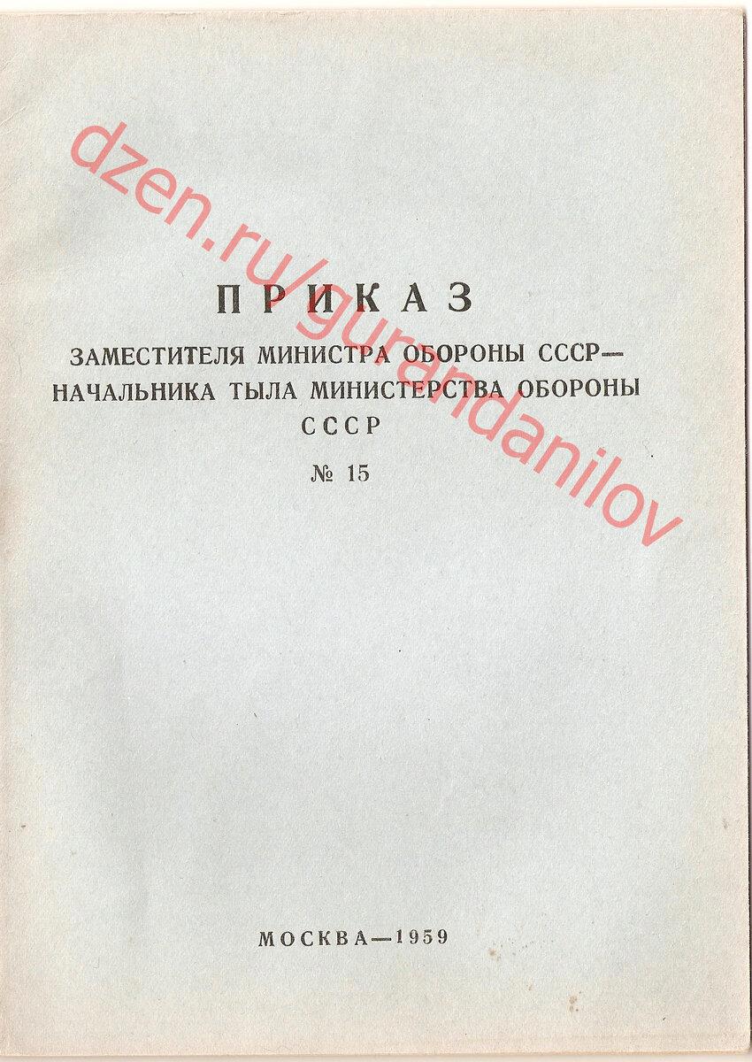 Итогом переписки стало издание приказа заместителя Министра обороны СССР начальника Тыла Министерства обороны СССР № 15 от 13 февраля 1959 г.