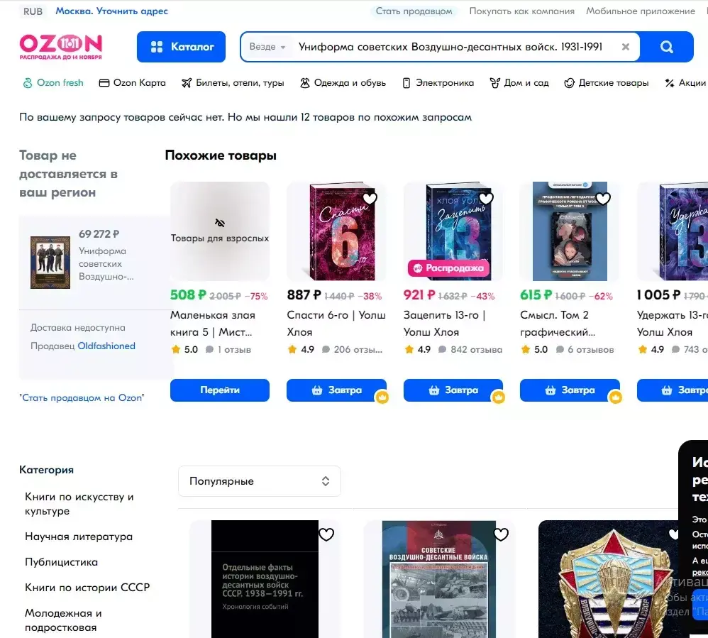 Скан со страницы Озон сделан 31 октября 2024 г.