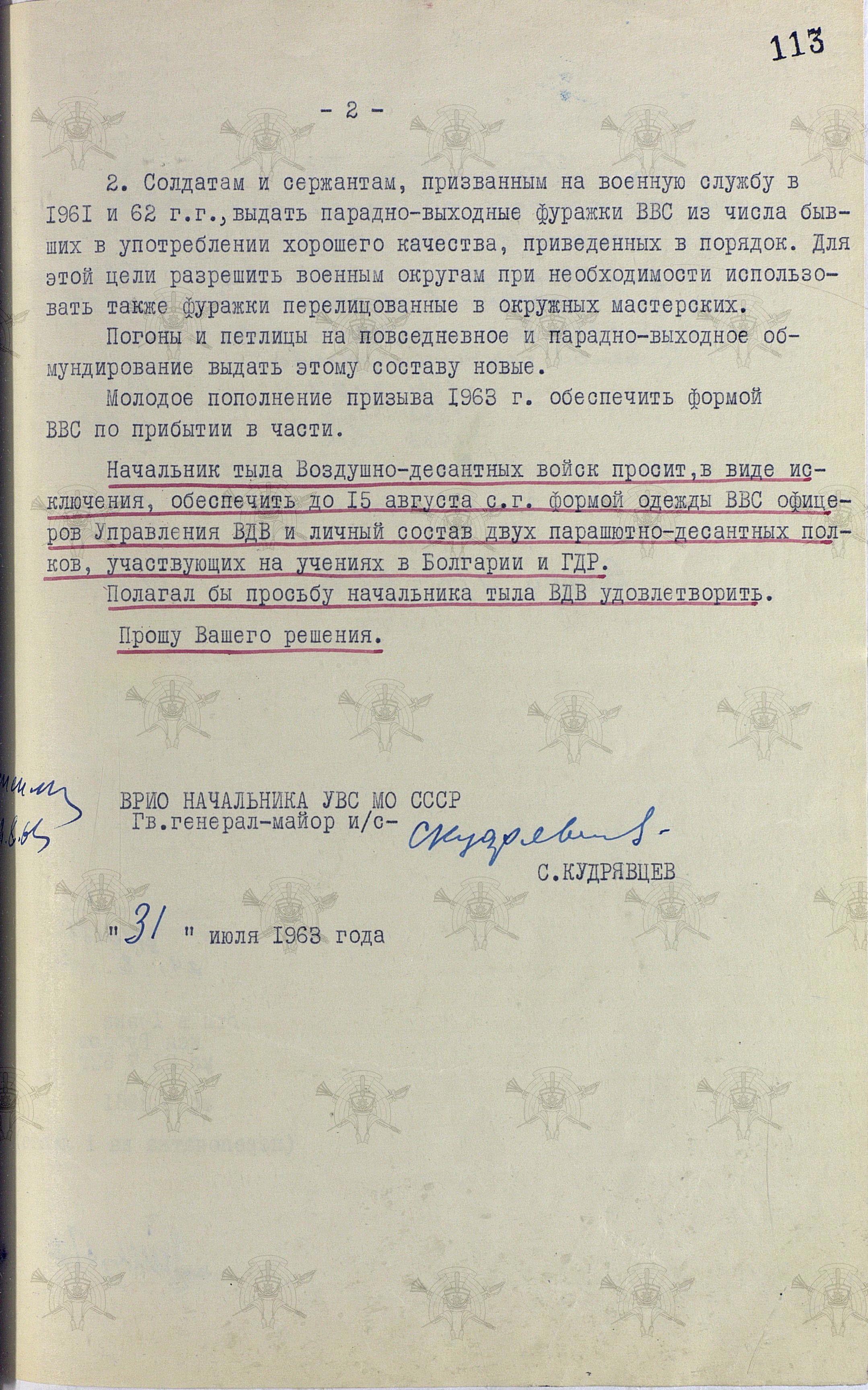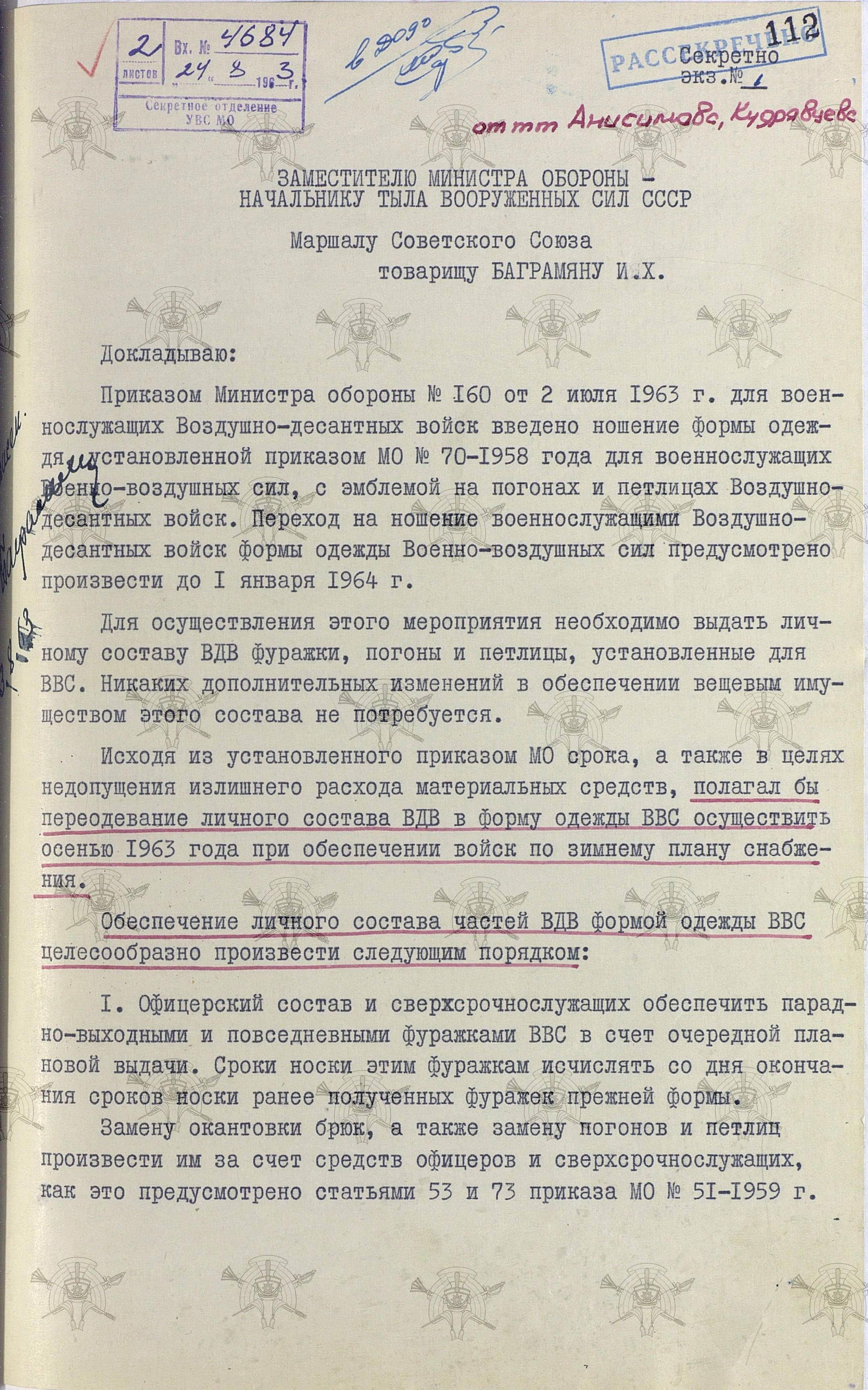 С одной стороны, для ВДВ гораздо важнее качественное полевое и специальное обмундирование, а с другой - понимаю и генерала В.Ф. Маргелова. Если уж создавать, по сути, новые войска, то и в повседневной жизни, и на параде, своим внешним видом, десантники должны выделяться на фоне остальных видов и родов войск.