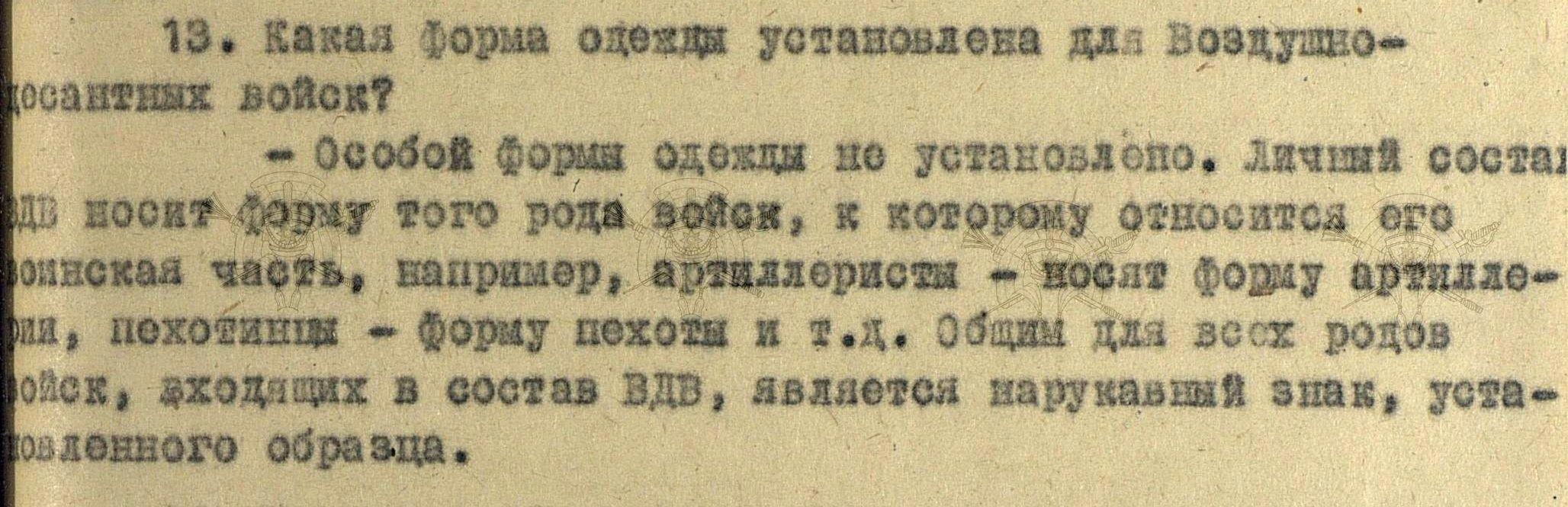 Но, не прошло и каких то пятнадцати лет, как для военнослужащих Воздушно-десантных войск ввели ту же форму, которую военнослужащие Военно-Воздушных Сил начали носить уже в 1958 году:
