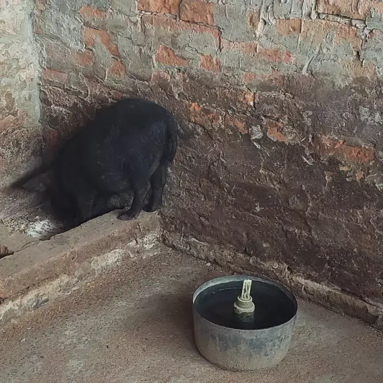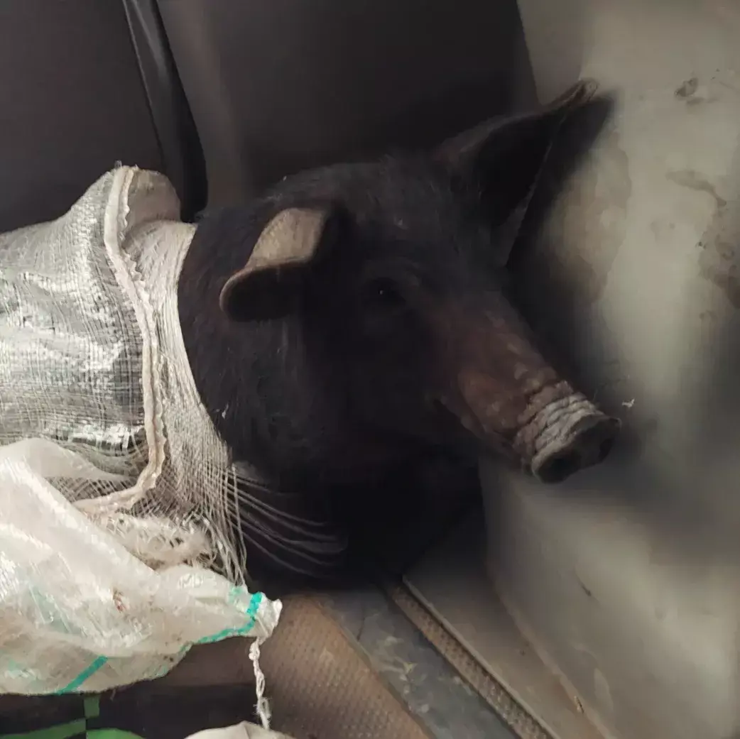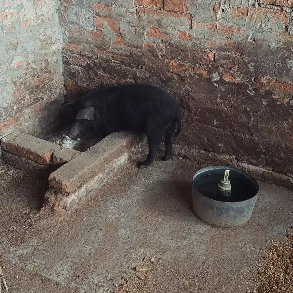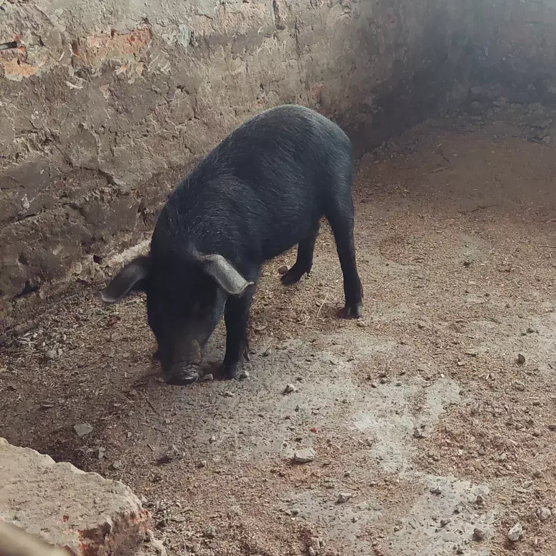 Вот так выглядит настоящая криойская свинка. Эта еще мелкая (1,5 месяца), мамаша длинной мордой напоминает бородавочника. Ну или Пумбу из известного мультфильма.
