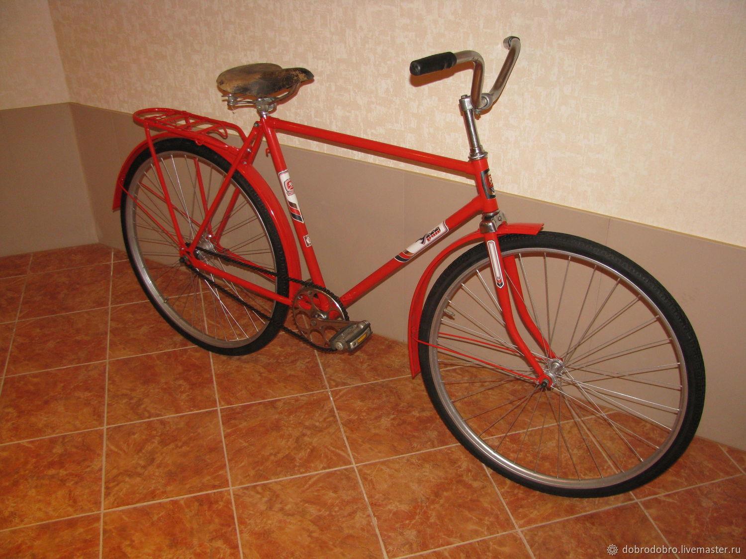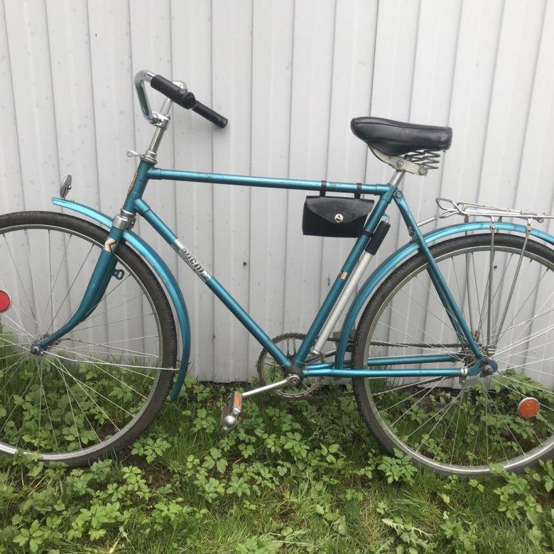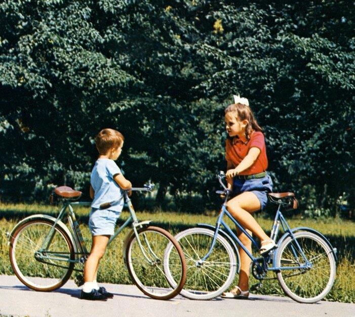 Примерно тогда, когда мы начинали ездить на "Орленках", мы пробовали ездить и на "Взросликах", но для нас эти велосипеды были великоваты и нам приходилось просовывать ногу под рамкой.