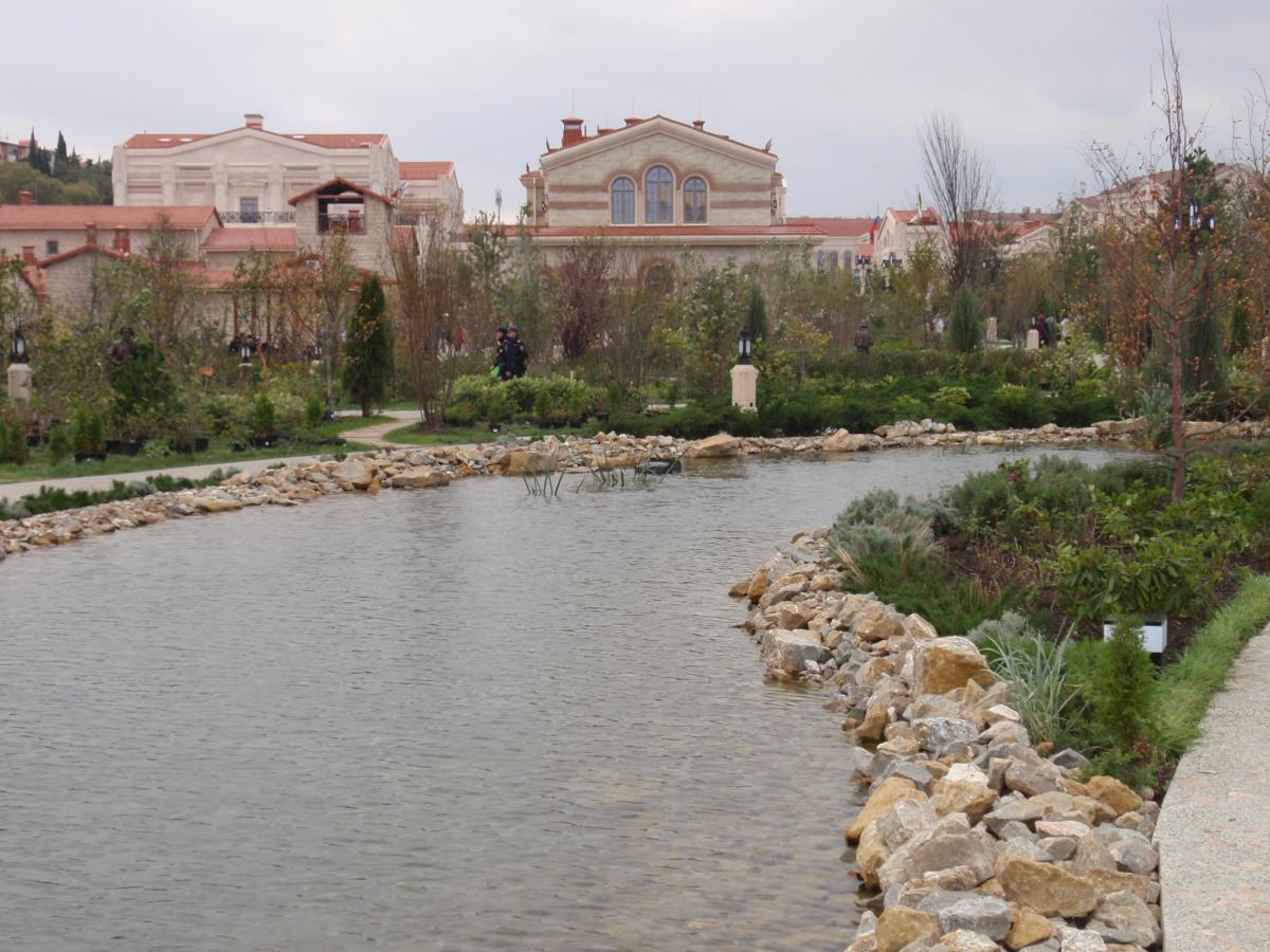 В результате новую-старую реку (судя по всему, она когда-то была надземной, и вполне могла определить место основания древнего города) решили вывести на поверхность, построить через неё мост и назвать Героон. Вообще, Героон – античное святилище, место погребения важной фигуры или героя. Один из героонов нашли на месте раскопок у реки, возможно, там был захоронен один из первых градоначальников Херсонеса. В общем, на месте обнаружения водоносного слоя сделали 15-метровый колодец, по которому вода качается в опреснительную установку и после очистки поступает на поверхность. А там сформировали красивое русло, укрепили берега, выполнили гидроизоляцию, посадили кувшинки и запустили цветных карпов. Я думаю, прошлогодние уточки рано или поздно вернутся.