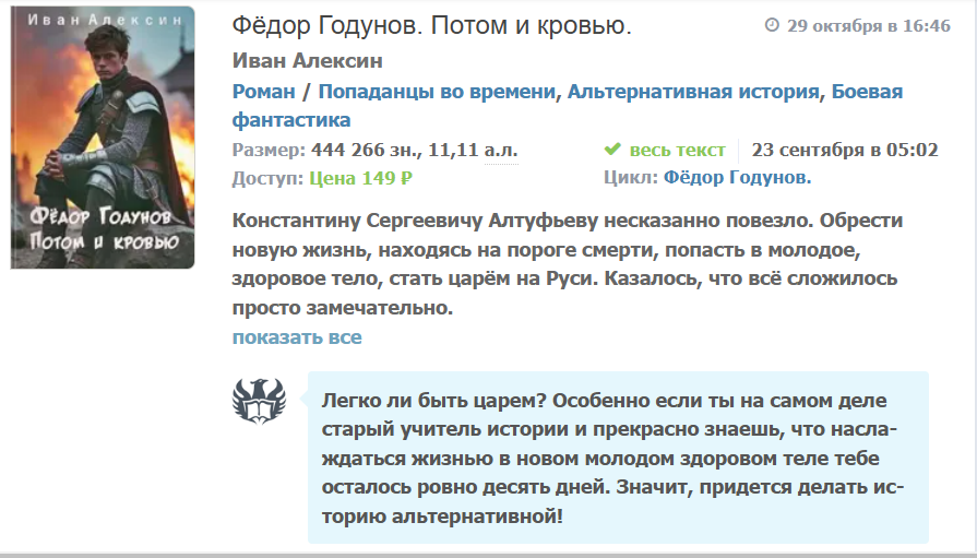29.10.24 Обнаружила книгу мужа в подборке АТ — Альтистория.