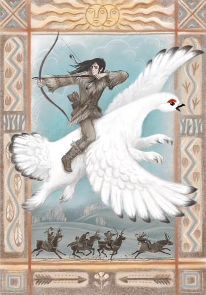 Шогол-Ву уходит от погони верхом на нептице. Это само по себе прекрасно, а ещё моё сердце греют детали вроде Двуликого, белого цветка, символов ока, нашитых на одежду веточек, перьев и прочего, что не упоминалось в отрывке, но было в книге.