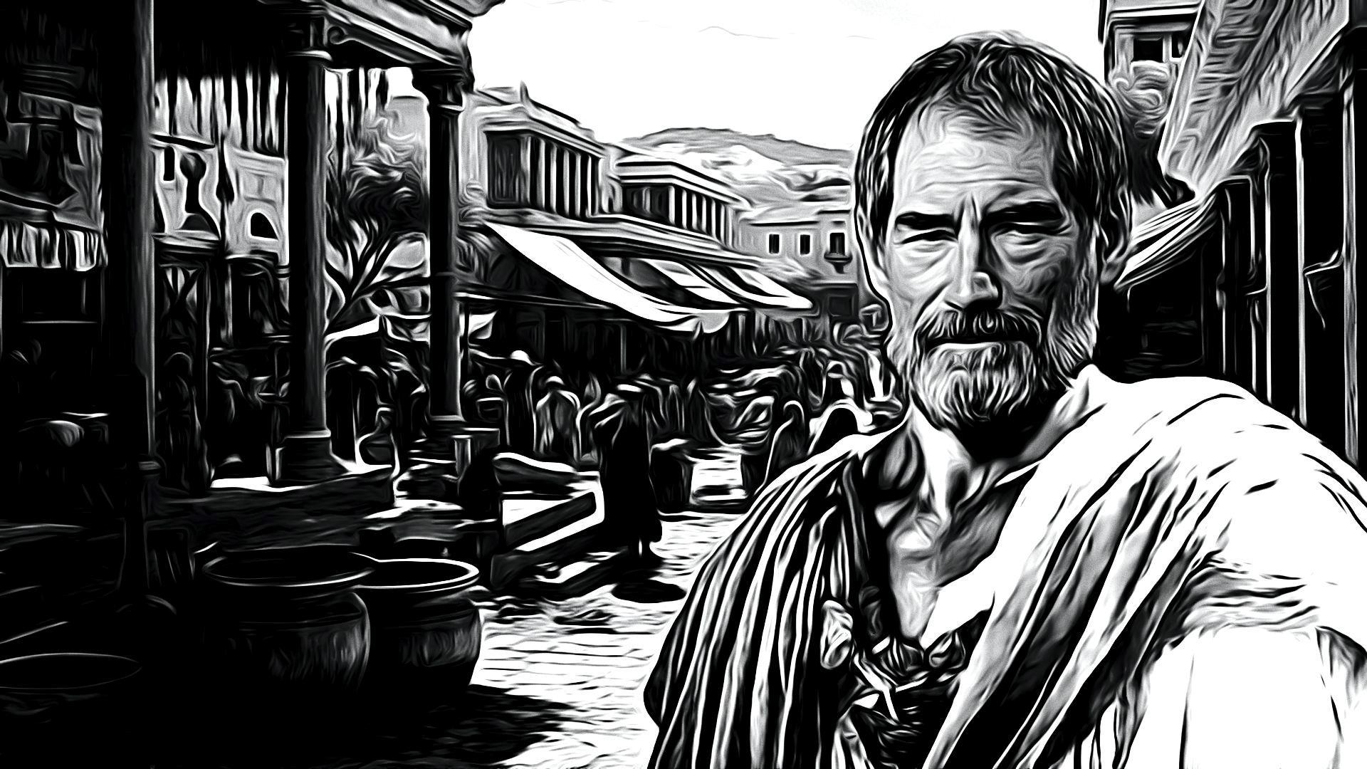 Публий прошёл длинным портиком и добрался до библиотеки. На ступенях у входа сидел человек несколько необычного вида. Мужчина в самом расцвете сил и лет. Насколько Публий мог судить об эллинских канонах прекрасного, сей муж явно соответствовал лучшим идеалам. Отменно сложён и красив. При этом не слащав, подобно катамитам. Лицо суровое и одновременно приветливое. Подбородок гладко выбрит, а вот причёска очень странная – волосы длинные, зачёсаны назад, достают до лопаток. И никаких следов завивки, совершенно прямые. Ни эллины так не носят, ни уж тем более римляне. Одет незнакомец не на эллинский, а на римский манер – в светло-серую тунику и дорожный плащ-лацерну.