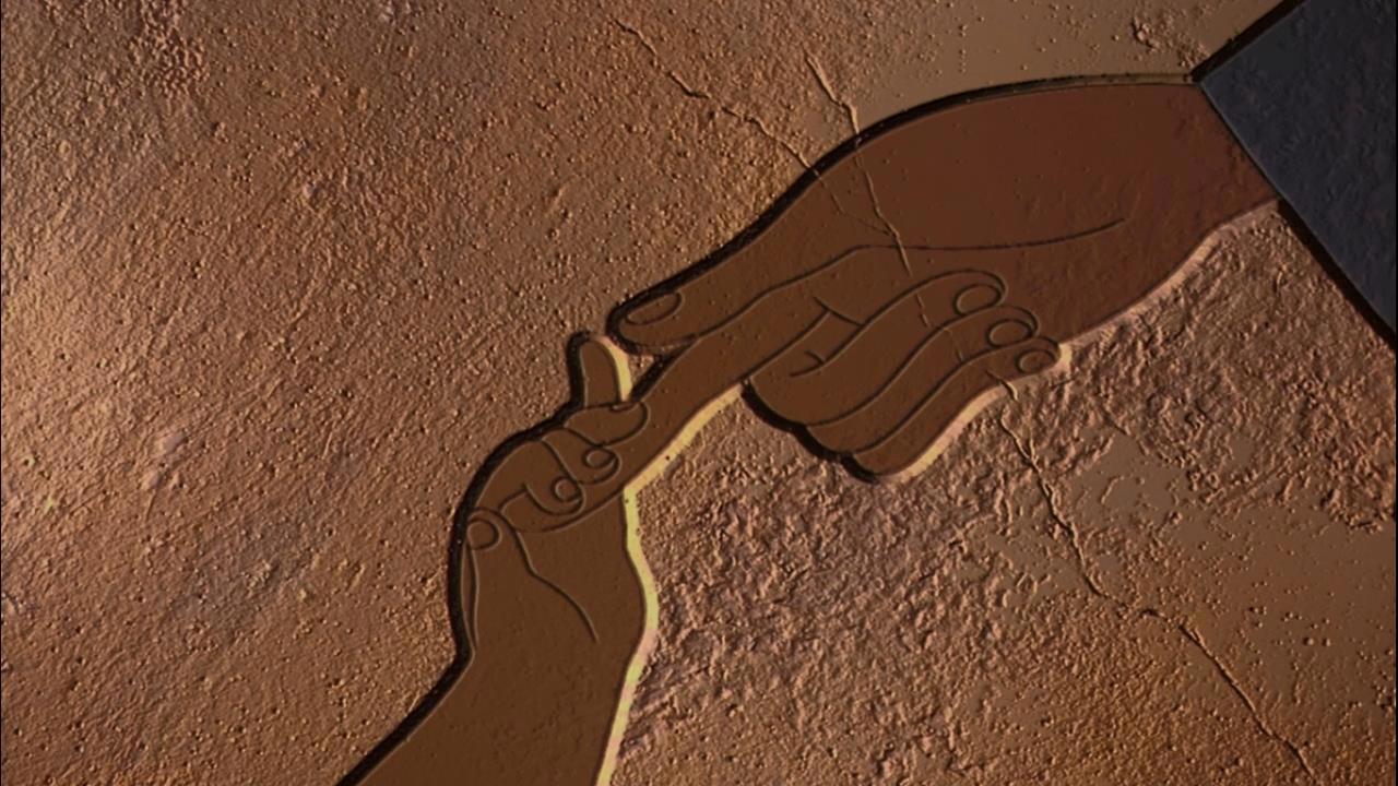 Как бы то ни было, в мультфильме есть логический пробел. Знание об избиении младенцев не связано со знанием о происхождении Моисея. (На фреске нет эпизода со спасением Моисея). И в разговоре с сыном Сети не поднимает эту тему. Он только объясняет свое решение.