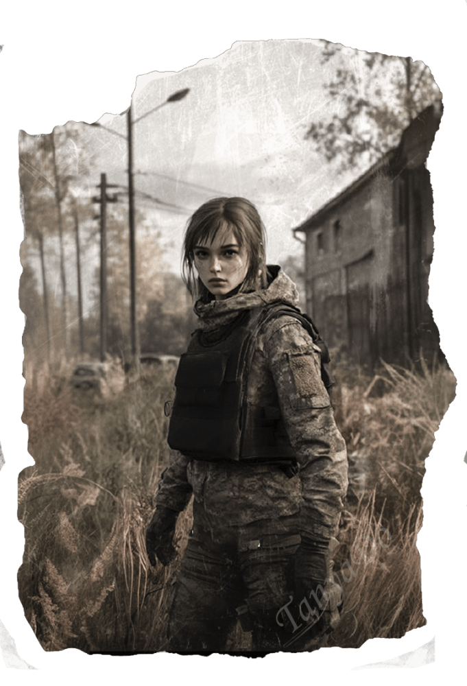 Внешность: Темноволосая, с яркими карими глазами и немного озорным взглядом. Среднего роста, спортивного телосложения, всегда предпочитает практичную одежду, подходящую для приключений. На её лице часто можно увидеть улыбку, даже в трудные моменты.