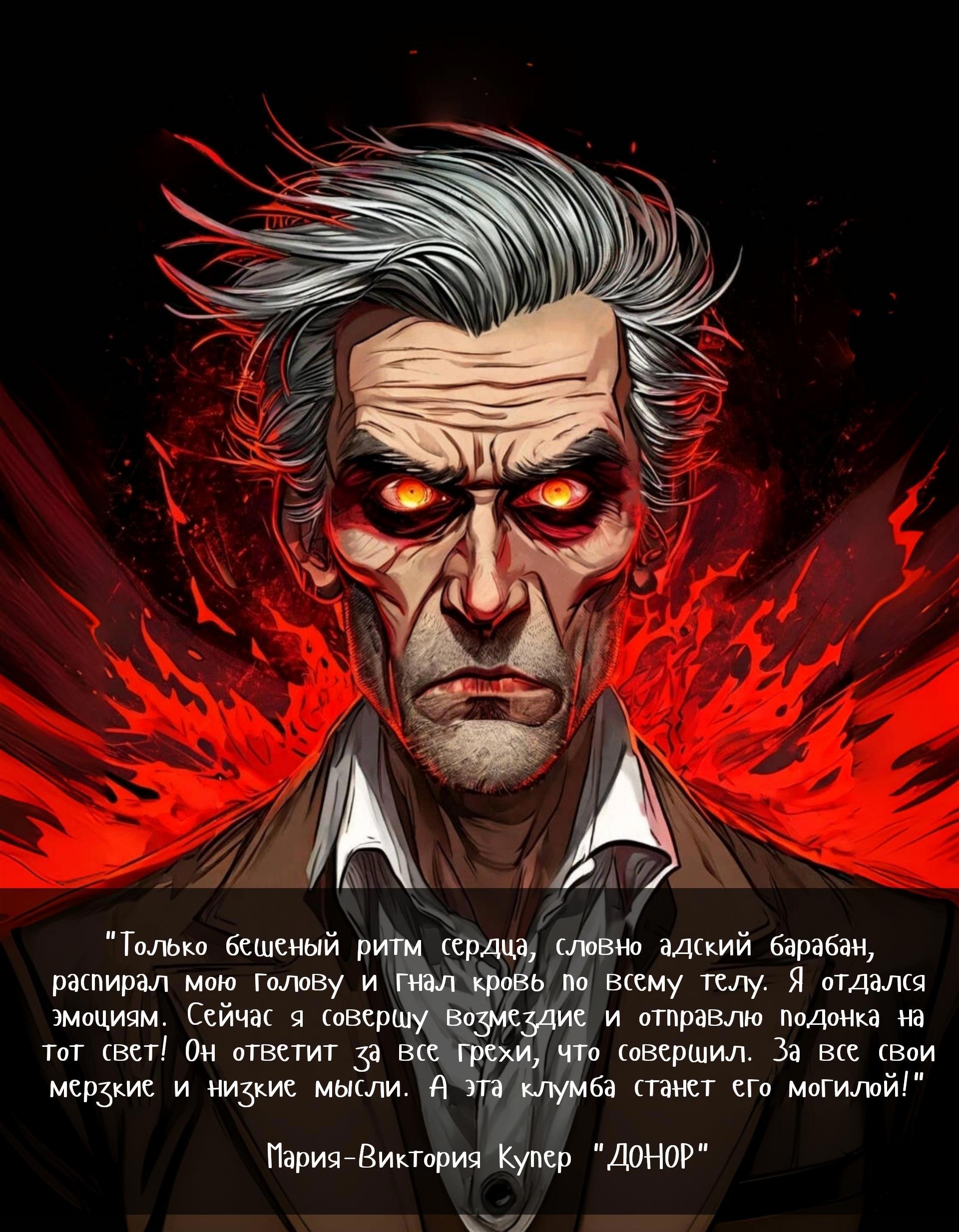 Предлагаю маленький отрывочек, оформленный как иллюстрация к повести "Донор" https://author.today/work/383182