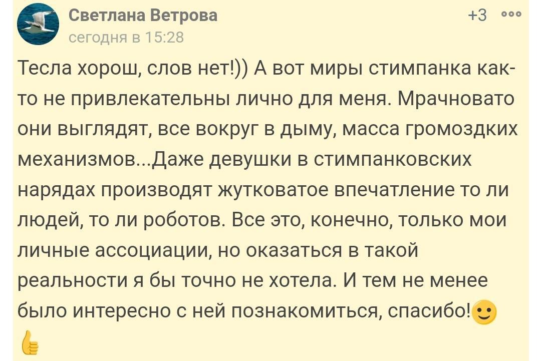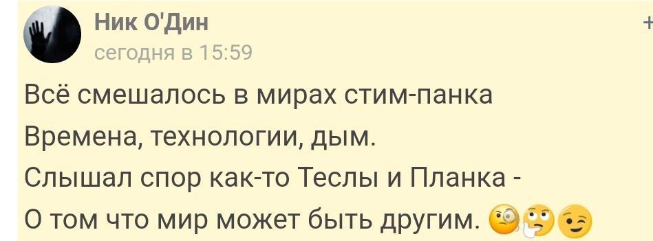 N.B. Не знаю почему, но я почему-то интуитивно считаю, что Никола Тесла принадлежит миру "Стимпанка" или "Дизельпанка"?