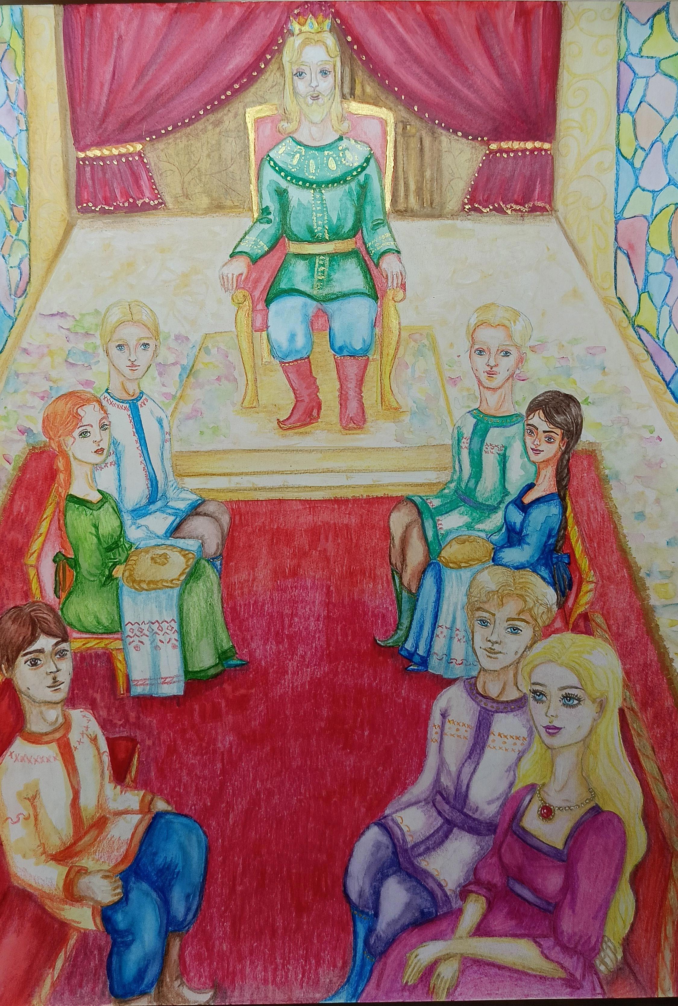Мои пустые руки не остались не замечены царём. Он бросил на меня разочарованный взгляд, но на этот раз решил начать с других будущих невесток. Девушки подошли к каждому в собрании, в том числе и ко мне, и предложили отщипнуть от караваев. Попробовав их стряпню, я пришла в восторг! И нашла ещё один плюс в том, что ничего не испекла: все присутствующие подавились бы моим хлебом и выплюнули бы его…