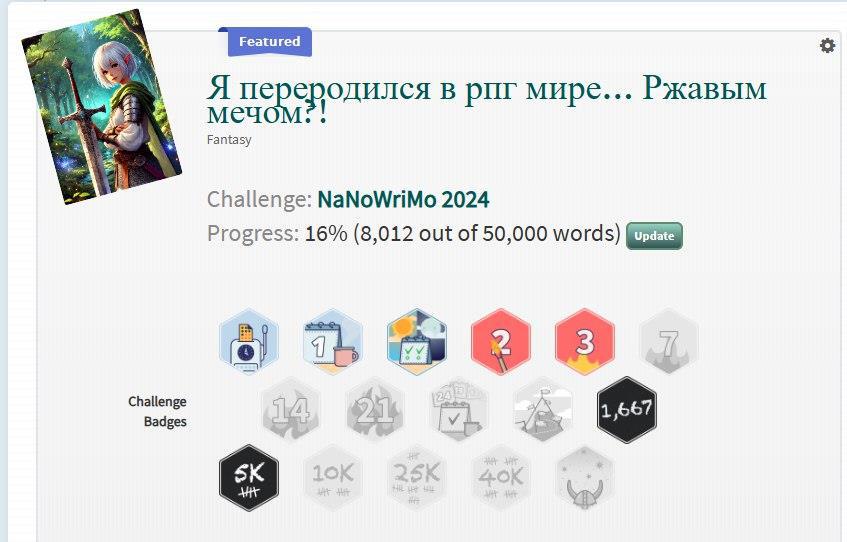 Я - автор никогда не хваставшийся своей продуктивностью успел написать 8012 слов за 4 дня. Конечно, они сыроваты, однако задумка, корень сюжета, мир и персонажи мне очень нравятся.