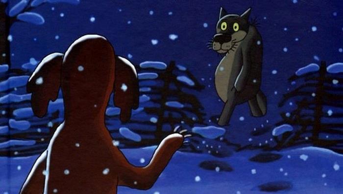 Потом кабан принес вызов на поединок, потом была дуэль двое на двое: "волк и кабан vs пес и кошка", позорное бегство диких и лишь потом - примирение.