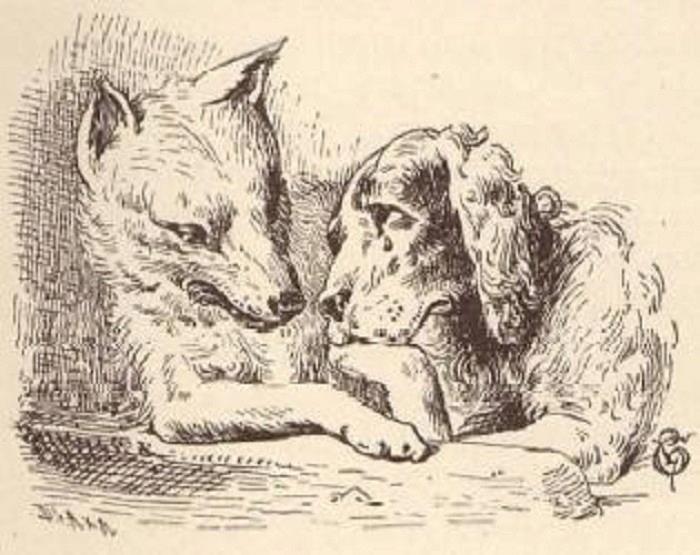 Другие заявляют, что следы ведут в Древнюю Грецию и видят начало истории пса и волка в басне Эзопа "Волк и собака".