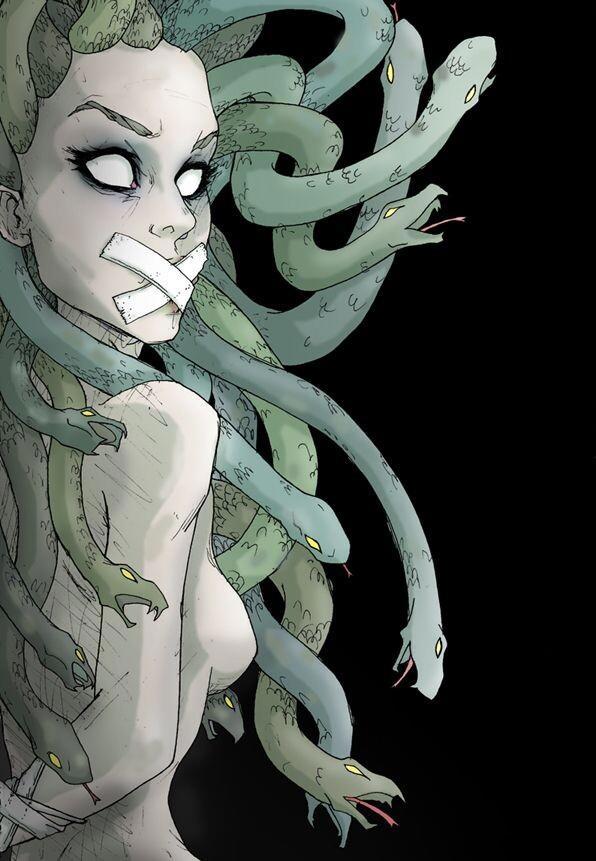Оказывается Медуза была дочерью морского старца и обворожительной девушкой с красивыми, человеческими волосами. Её прекрасные золотистые локоны вызывали восхищение и зависть у женщин. Ну то есть никаких змей и сама совсем не чудовище. Так вот в соблазнительную красотку влюбился властитель морей и океанов бог Посейдон. Бог же, кто ему откажет, да? Но Медуза была хорошей девушкой к тому же она была влюблена в молодого рыбака живущего на одном из многочисленных островов Эгейского моря. Она честно отвергла ухаживания Посейдона и вернула ему его дорогие подарки. Тогда Посейдон щелчком пальцев вынес приговор жениху Медузы и отправившись на очередную рыбалку тот утонул вместе с лодкой. Горю девушки не было края и на появившегося из воды обнажённого красавца Посейдона она даже не взглянула. Тоже нашёл время для стриптиза. Более того она сбежала от него в храм богини Афины намереваясь испросить у той мудрого совета. Быть может жениха её ещё можно было вернуть к жизни. Полный гнева Посейдон превратившись в хищную чёрную птицу, изнасиловал Медузу прямо на алтаре храма богини Афины. Но бедняжка так и не стала его до конца, не признала его власти над ней. И тогда Посейдон распустил грязные слухи о Медузе.