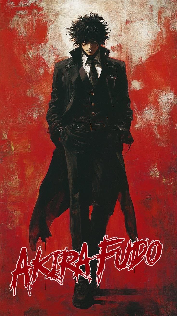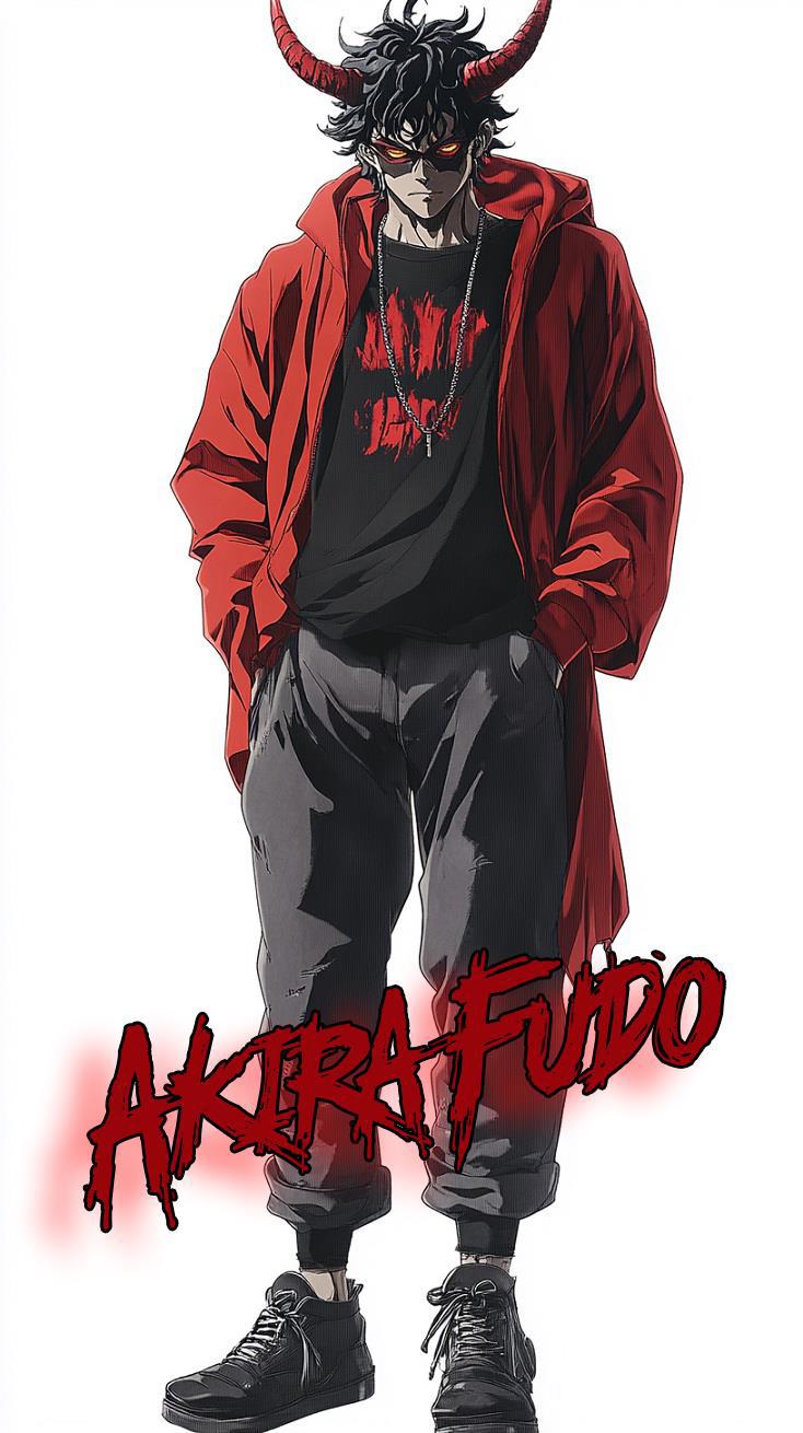 Знаю только мульты Хая́о Миядза́ки. Пробую. Инет. Понравился бесявый Акира Фудо. Получился набор, от рисовки до реалиЗЬма. Вы уж простите дилетанта, и поправьте. Если что...