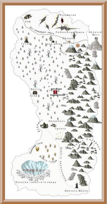 Автор: Последний ЭонМы переработали карту с ключевым местам, которые есть в Землях Печати Отмщения, чтобы вам было удобнее следить за приключениями героев романа "Поступь Кошмара". В наших блогах и статьях Атласа Крига можно посмотреть иллюстрации и ознакомиться подробнее с географией этого дола.
