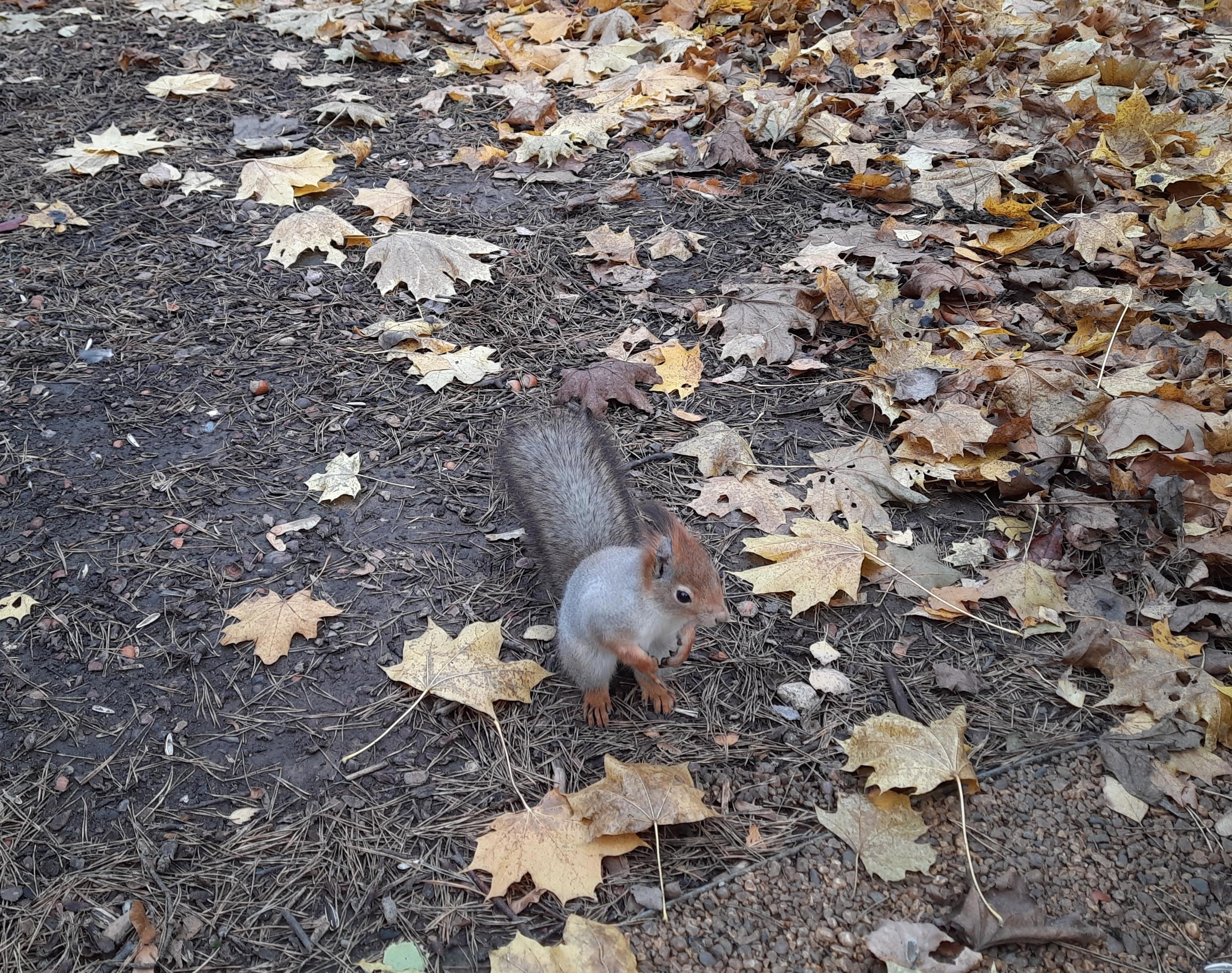 Но в парке сразу становится веселее, когда появляются белки! Грусть отступает мгновенно. Юркие, быстрые, пушистые комочки ловко скачут по веткам, ищут вкусности в кормушках, шебуршатся в опавшей листве.