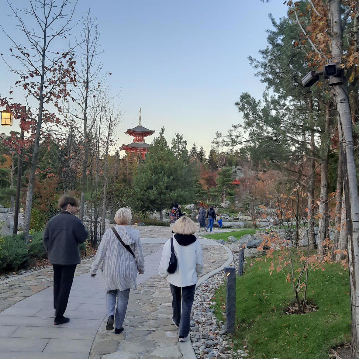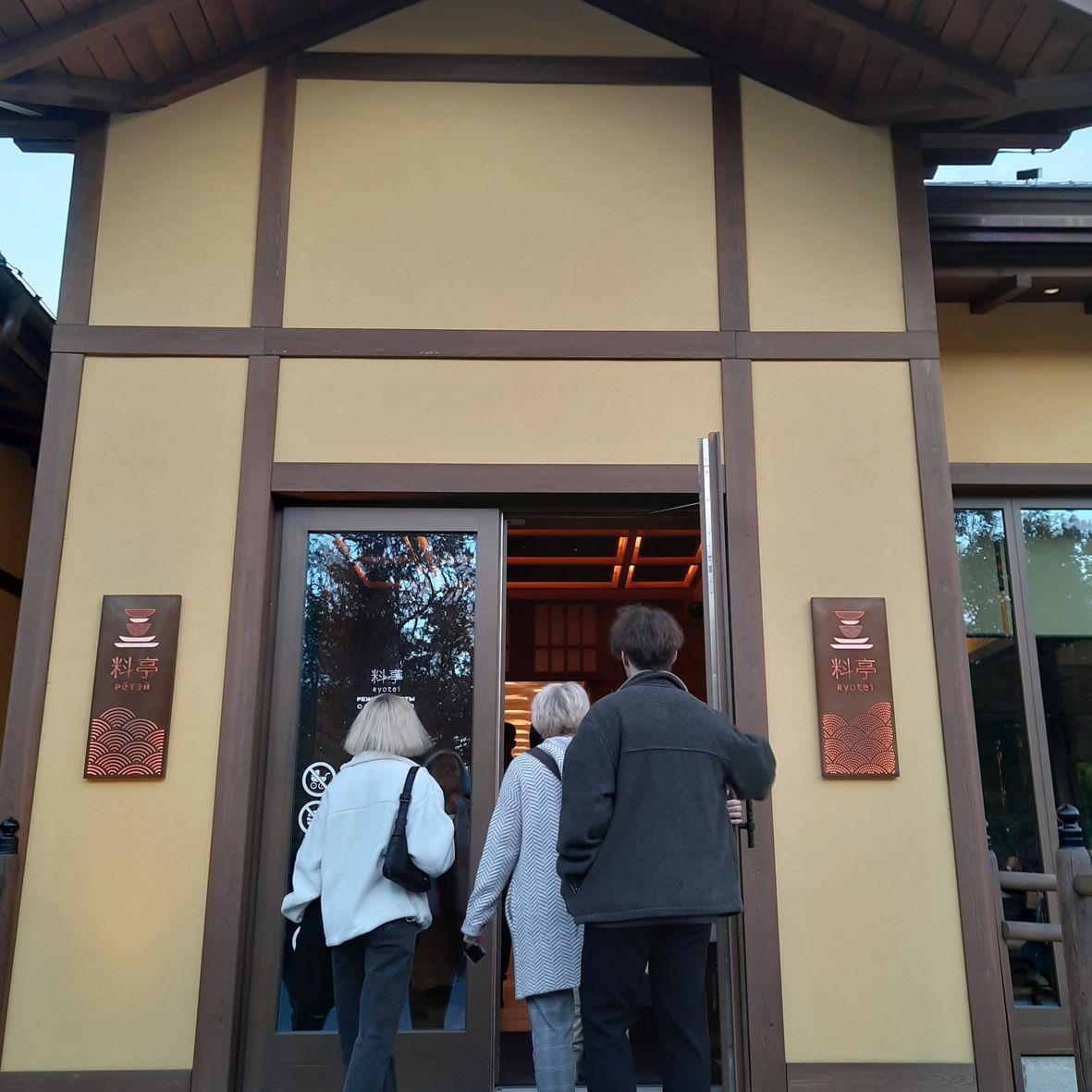 Вход в этот кусочек Японии по QR-кодам. У нас вход бесплатный, поскольку забронирован столик. Всё по времени: посидеть в ресторане - 2часа, а потом можно пошастать по округе.