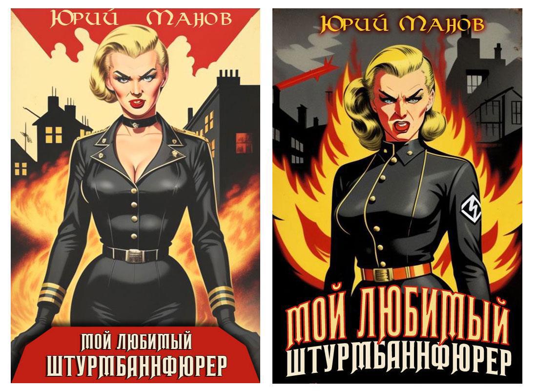 Автор: Анджей Б.Весьма необычная обложка потребовалось Юрию Манову. Идеи для арта у автора были такие, что до бана оставался один шаг  А потому я предложил стилизацию. Главное ведь в таком случае не историческая реконструкция униформы, а общая атмосфера, чтоб было понятно, чего ждать читателю от книжки. Мне кажется, этого удалось достичь. Использовал не только образ "злобной немецкой сучки", но и художественную стилизацию под старинный плакат.