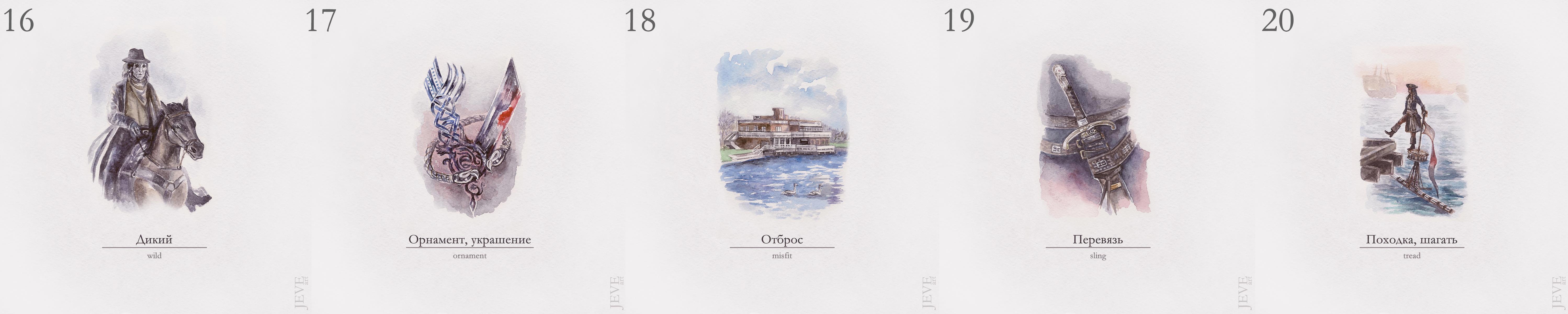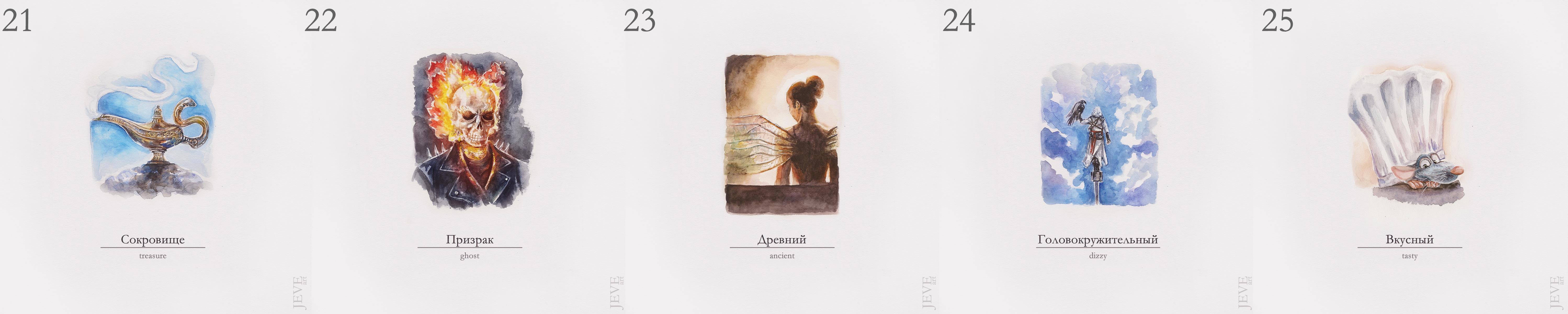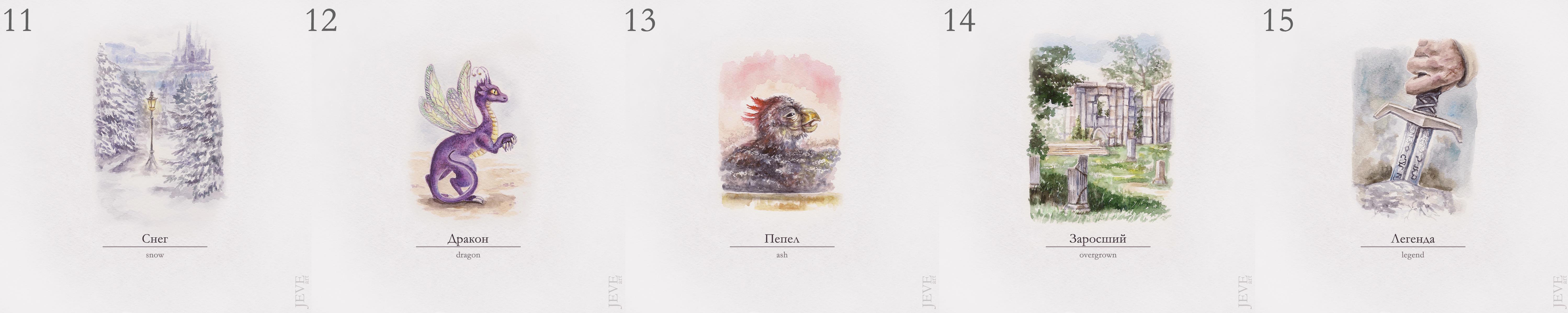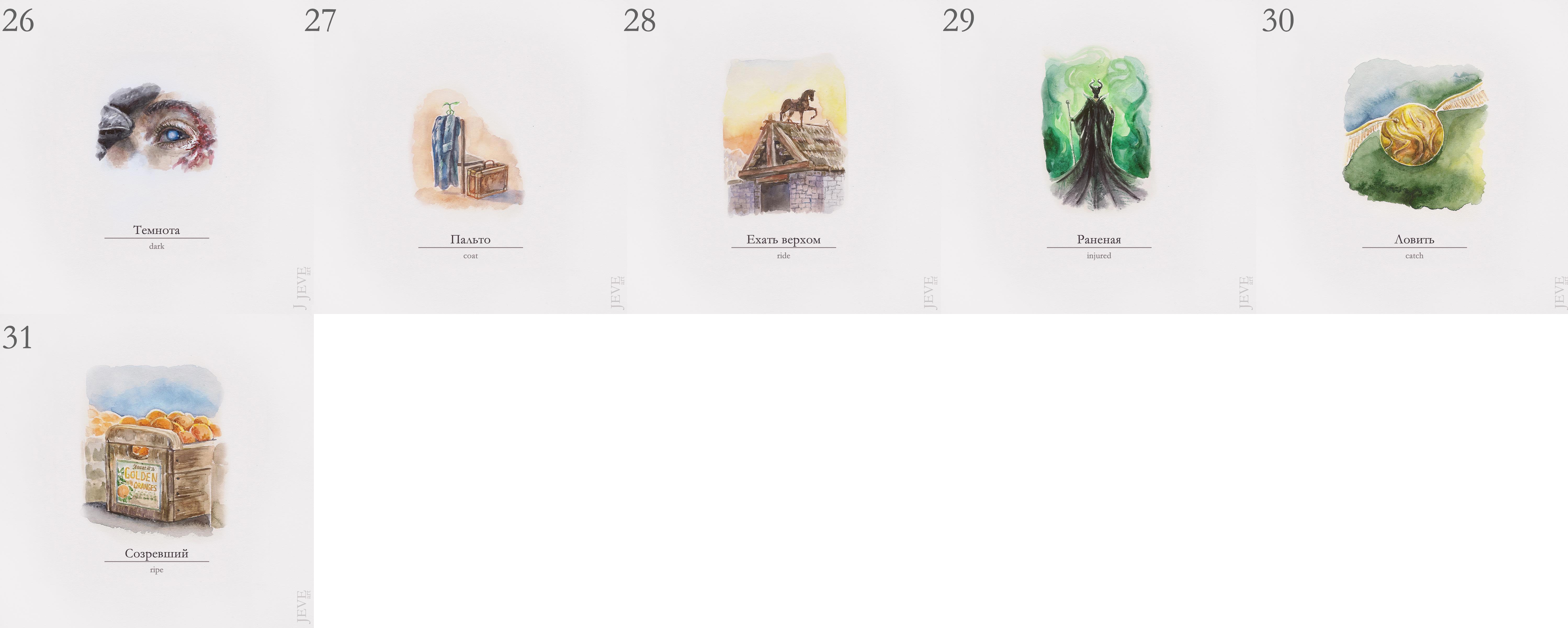 В этом году я таки умудрилась нарисовать все картинки в срок. Правда вместо классической туши взяла акварель. В остальном следовала официальному списку челленджа.