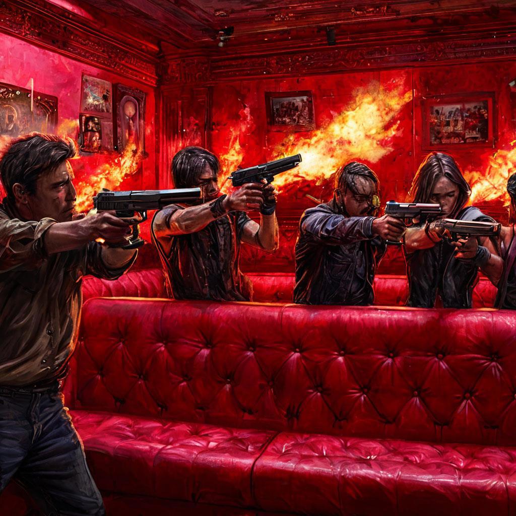 Параллельно ему с другого дивана вскочил еще один. В неоновом свете в их руках я разглядел пистолеты и обомлел. Женя с друзьями тоже замерли и, кажется, побледнели.