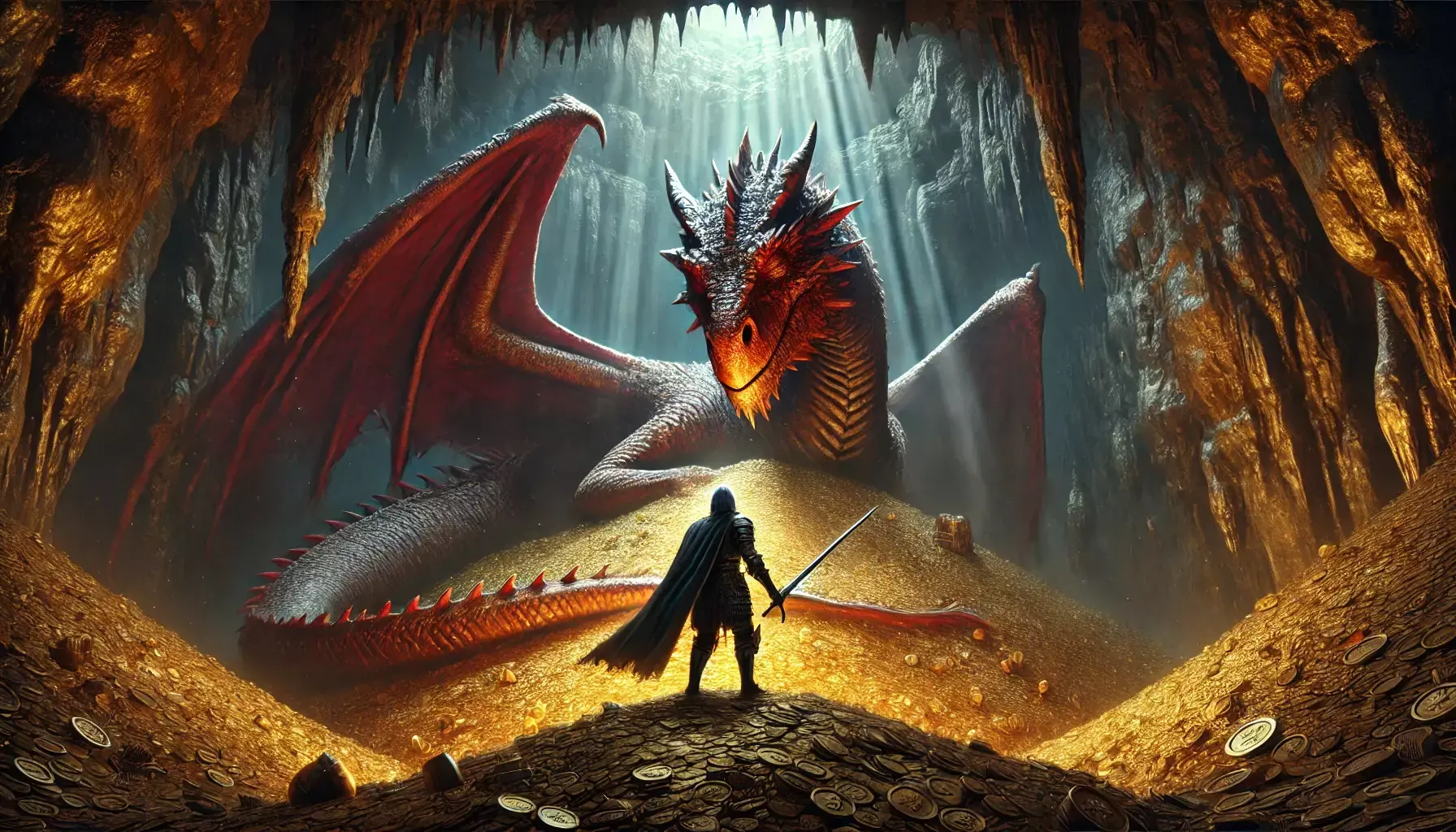 Рыцарь обнажил меч, но продолжал медлить. Во-первых, он был человеком благородным и не мог убить спящего дракона, даже если этот дракон разрушил родное ему село. А во-вторых, чтобы поразить дракона, закованному в тяжёлые латы Неджериту пришлось бы взобраться на осыпающуюся груду сокровищ. Он поступил иначе.