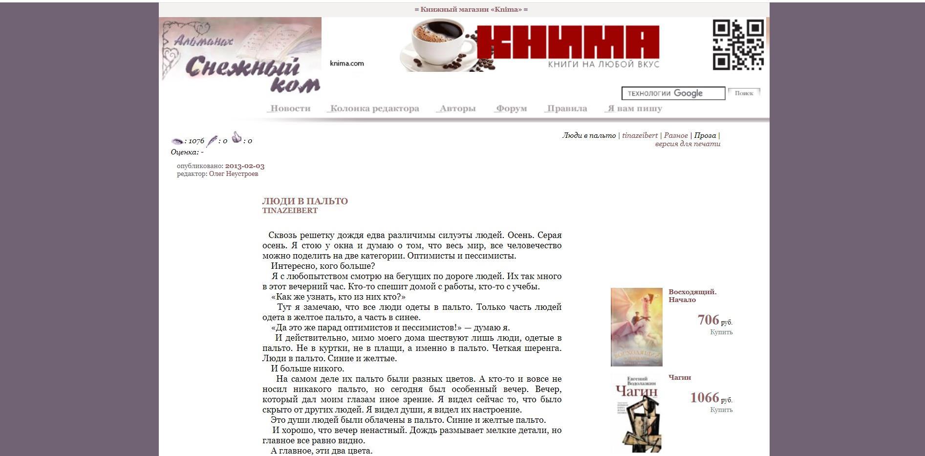 17. альманах-сайт «Снежный ком», 03.02. 2013.