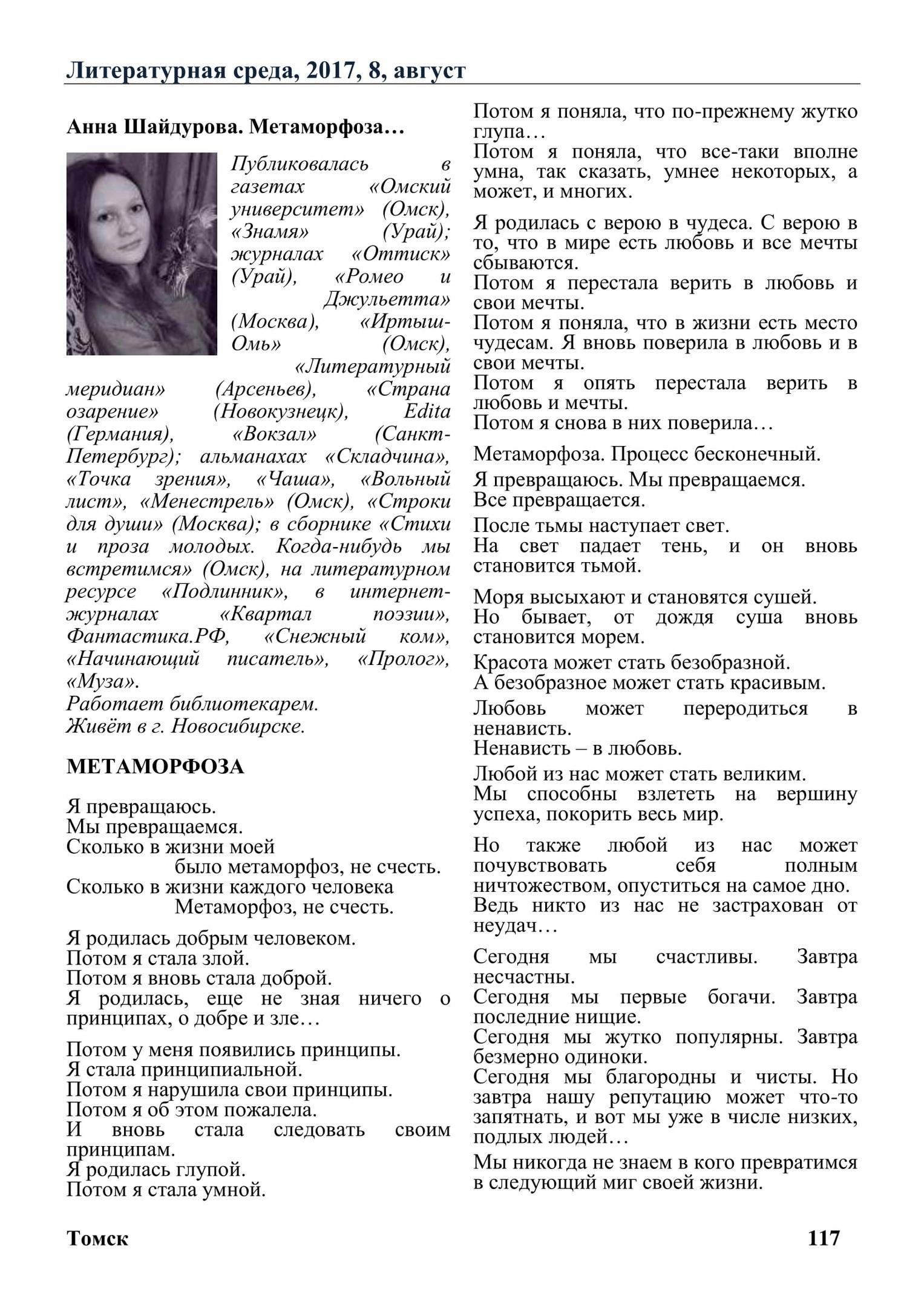 29. эл. журнал "Литературная среда" №8, 2017 (г. Томск)