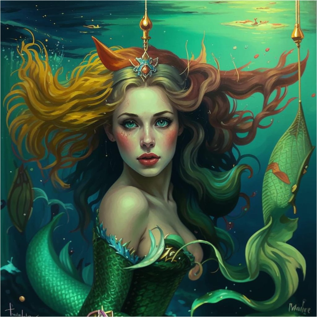 Автор: Аркадий ГолубковРусалочка в разных вариациях от нейросети Кандинский 3.1