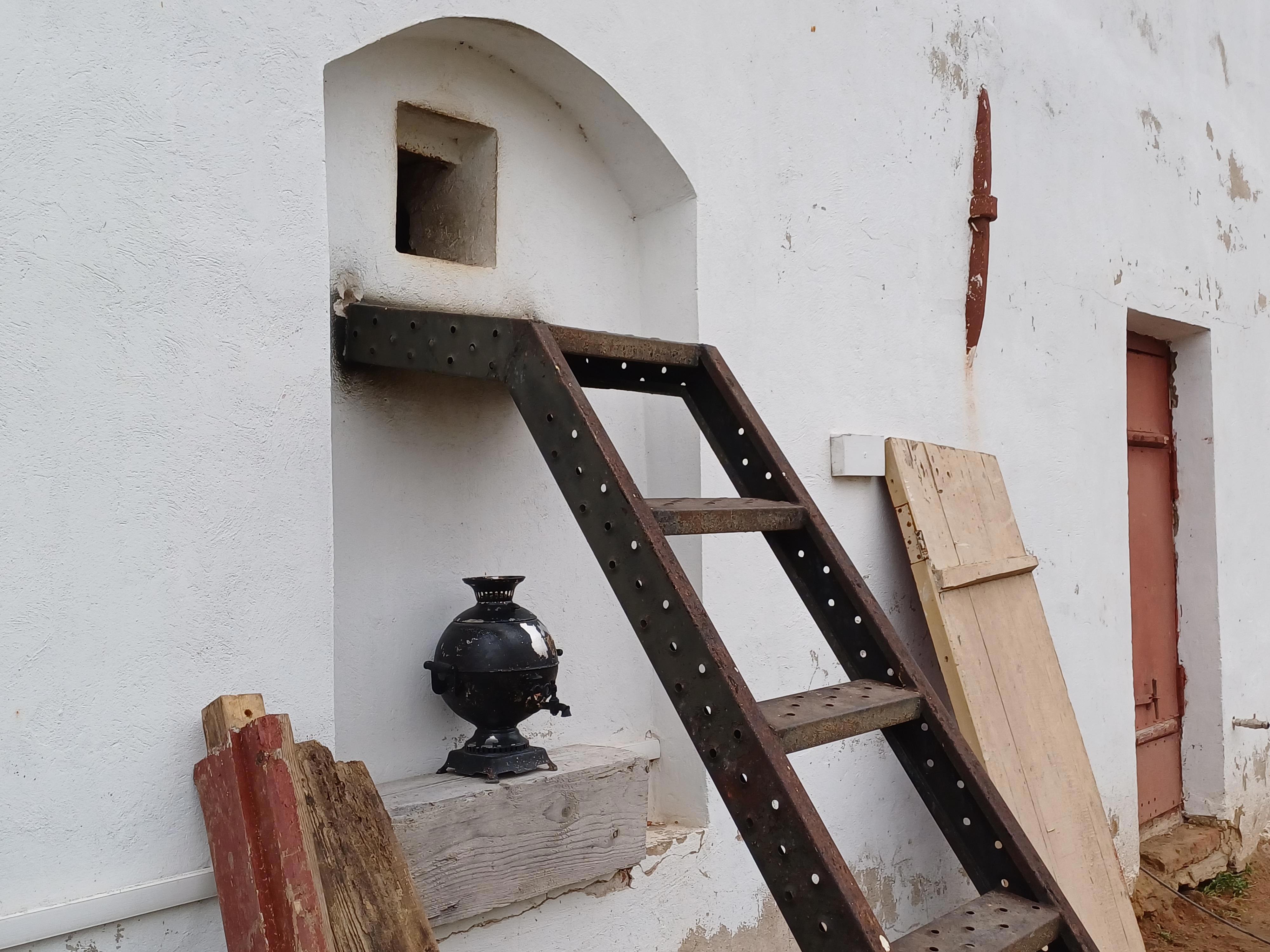В монастыре рабочие что-то делают, а вот котики попрятались - холодно. Рабочие сказали - сидят в подвалах. К нам вышли только Вампир и один из Шоколадных Зайцев - им и досталась еда.