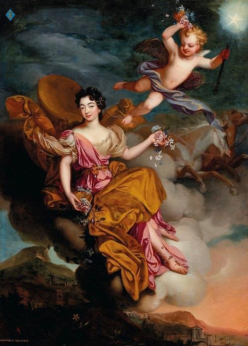 Потом эту сказочку про Петрушечку прочитала Шарлотта-Роза де Комон де Ла Форс - дворянка древнего рода, внучка маршала Франции. Вот ее портрет в образе Флоры.