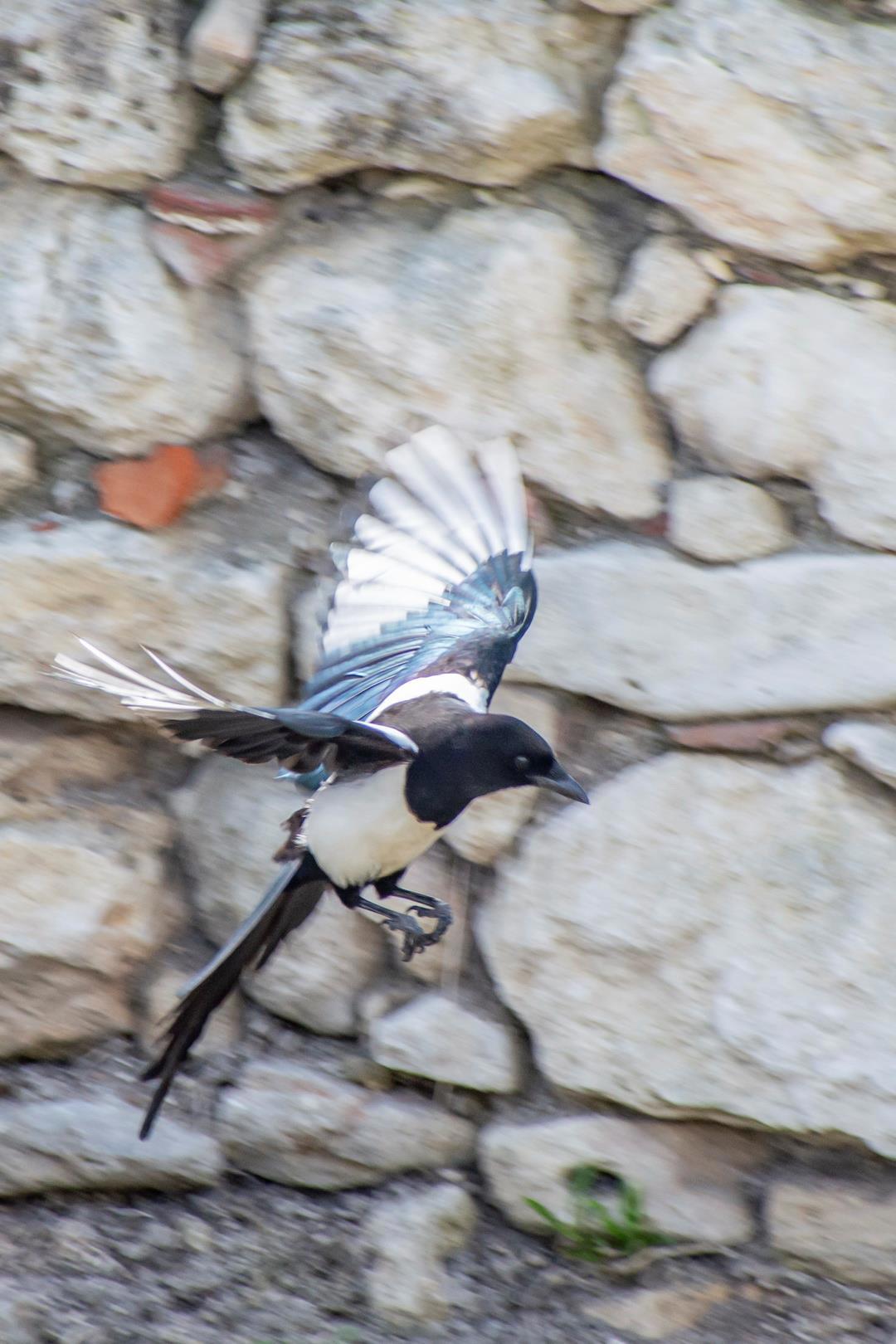 Уходя дальше в развалины старинного города, мы встречаем белобоких красавиц, которые шныряют туда и сюда между разрушенных стен. Лавируют в зарослях лоха серебристого и вообще ведут себя как настоящие хозяева города. Сороки, во всей своей красе.