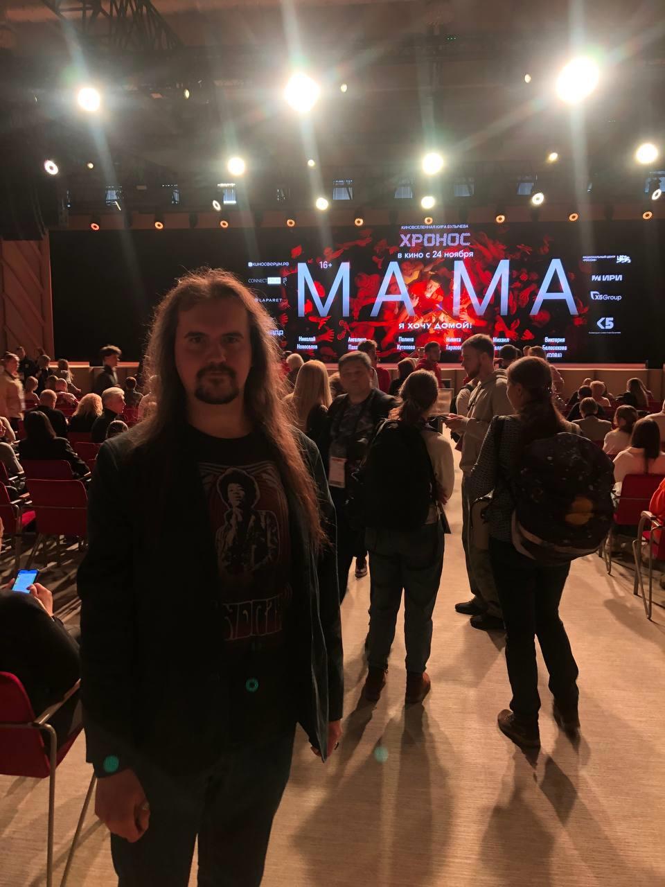 ...а уже несколькими днями позже, там же в экспоцентре, я оказался на закрытой премьере фильма "Мама", части киновселенной "Хронос", по произведениям Кира Булычёва. По приглашению от продюсера фильма, Эльбора Чернова (фото ниже) мы с несколькими коллегами по Литмастерской заглянули на просмотр.
