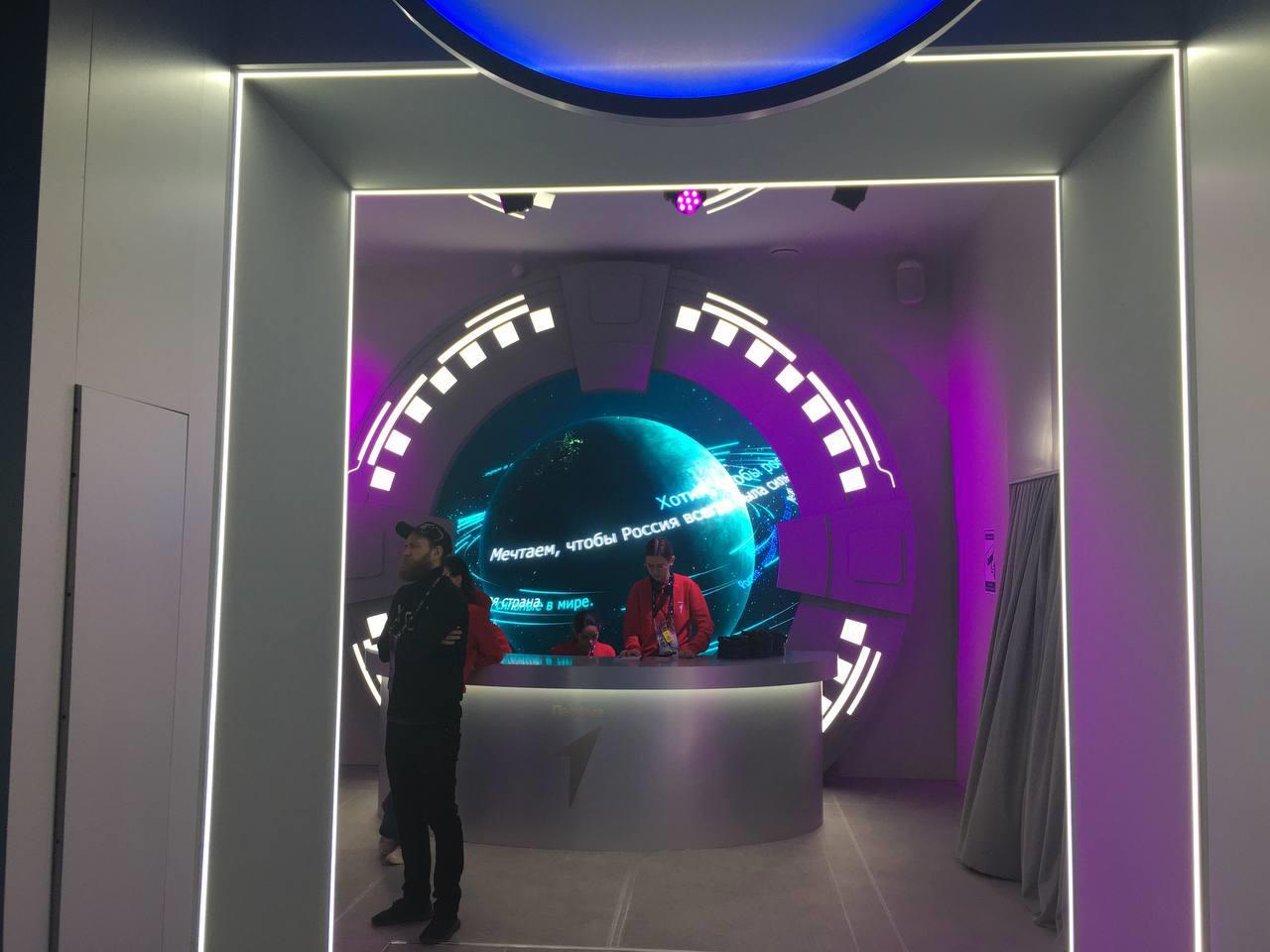 И всё это в футуристичных декорациях, вроде вот этого коридора с мультимедийными стенами.