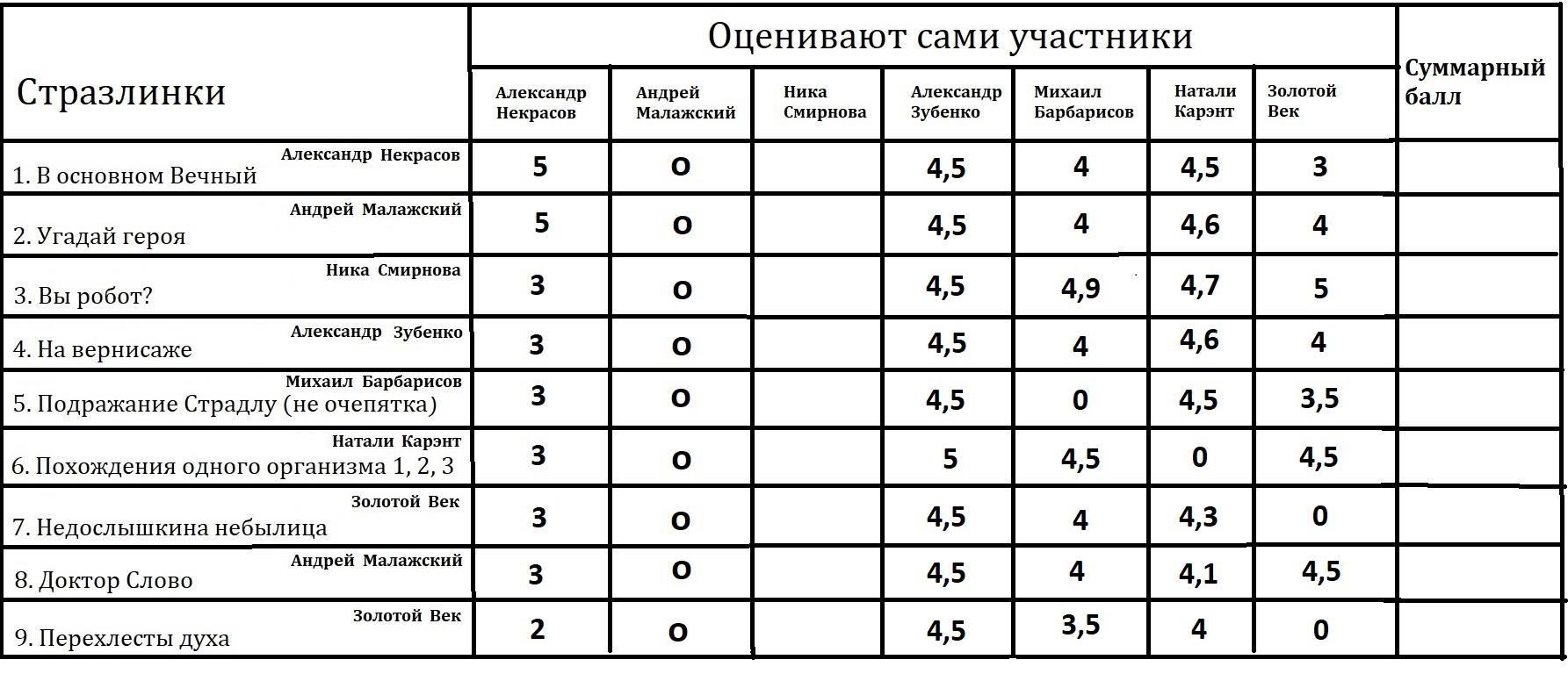 Внимание! Оцениваться будет не автор, а конкретная миниатюра, причем без сравнения с другими миниатюрами списка. Потому, что одновременно участвуют тексты разных весовых категорий.