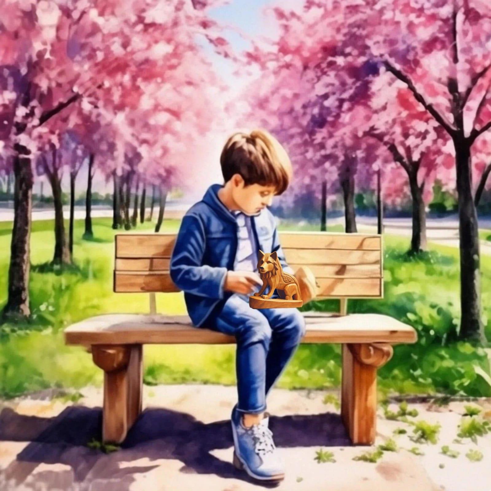 Но его, смотрю, никто не встречает, он идет один, поправляя ранец, висящий у него на правом плече, и явно не торопится к себе домой. Пройдя детскую площадку, он останавливается у небольшого столика, садится на скамейку рядом с ним, достает из ранца волка, и начинает с ним играть.